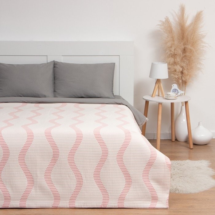 Покрывало хлопковое Этель «Волны» 220×240 см, цвет розовый, 100% хлопок, 300гр/м2