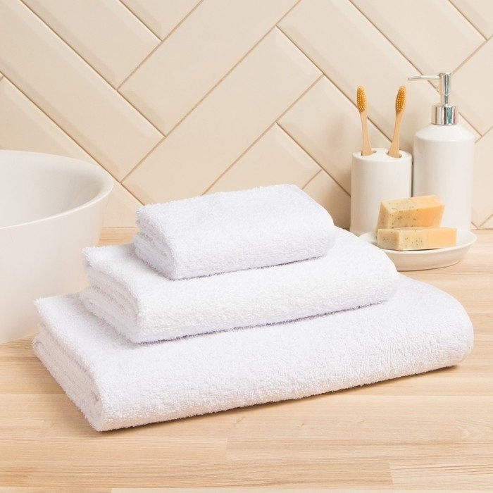 Полотенце махровое Экономь и Я 30*60 см, цв. белый, 100% хлопок, 350 гр/м2