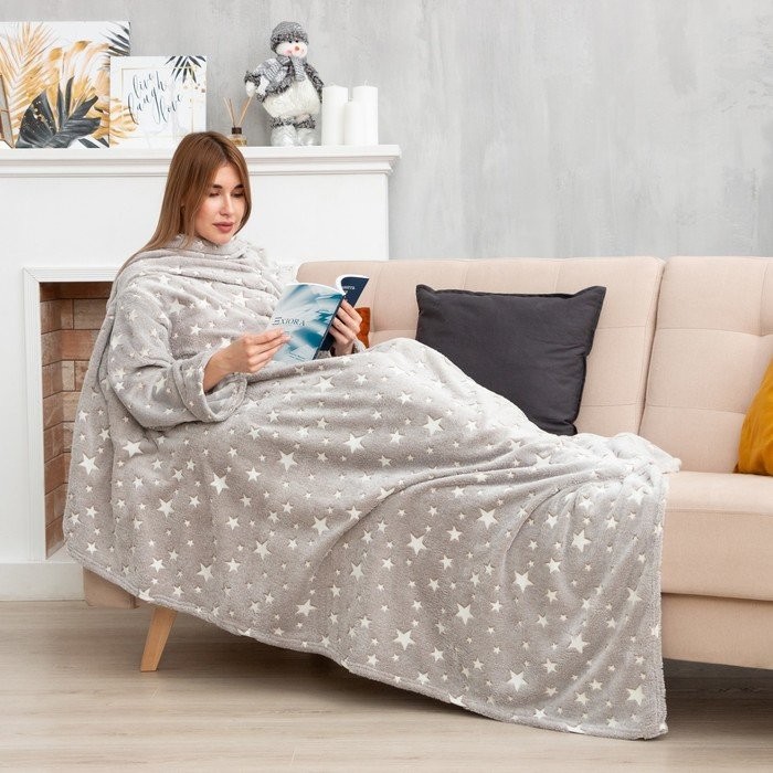 Плед с рукавами светящийся в темноте Этель «Звезды» 150*200, 100% п/э, 220 гр/м2