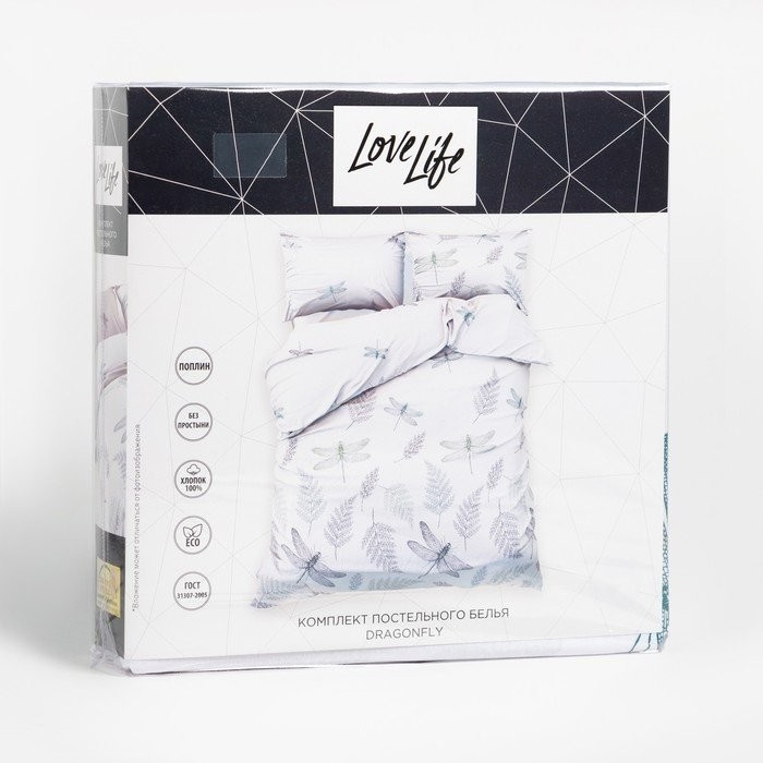 Постельное бельё 1,5 сп LoveLife «Стрекоза» пододеяльник 150×217 см+наволочка 50×70 см-1шт, поплин, 125г/