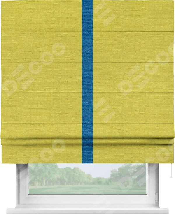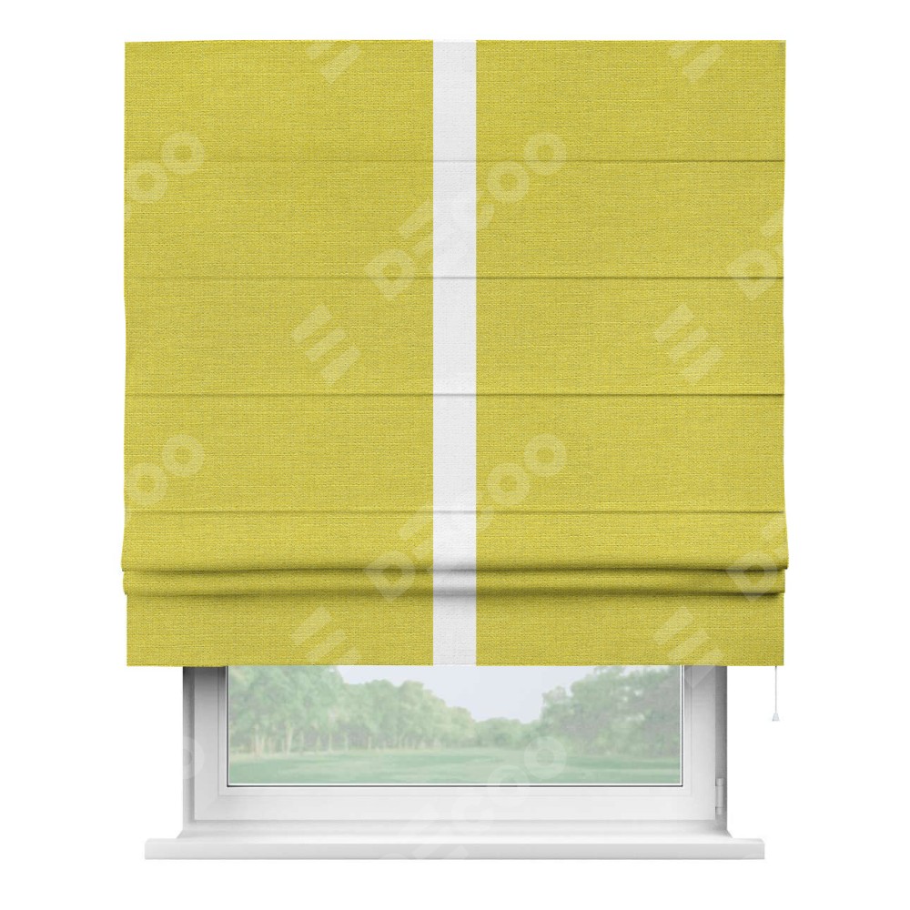 Римская штора «Кортин» с кантом Хайвэй, для проема, ткань лён салатовый