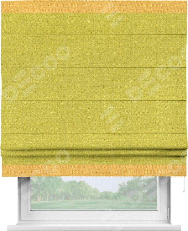 Римская штора «Кортин» с кантом Горизонт, для проема, ткань лён салатовый