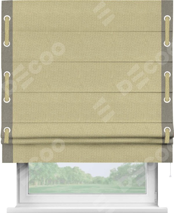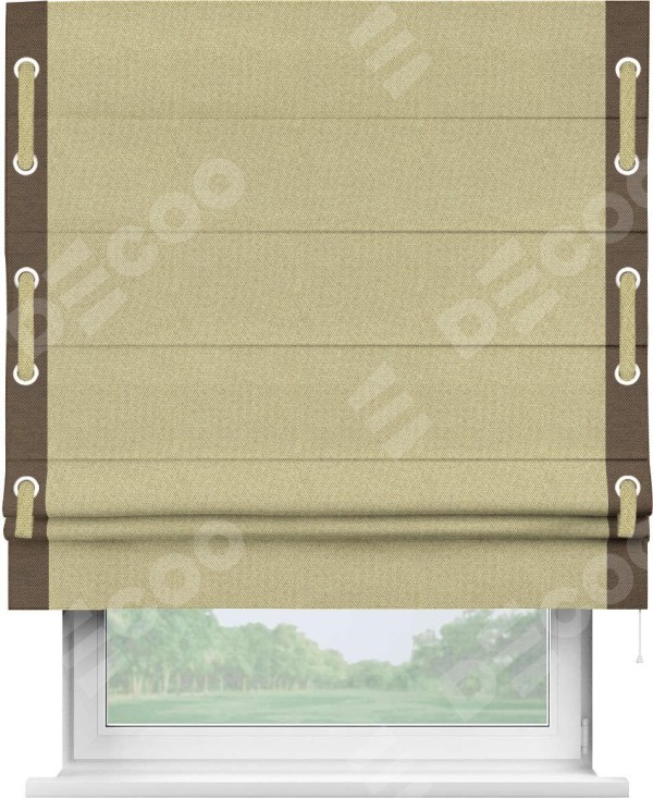 Римская штора «Кортин» с кантом Стрим Дуо (люверсы с пояском), для проема, ткань лён димаут, песочный
