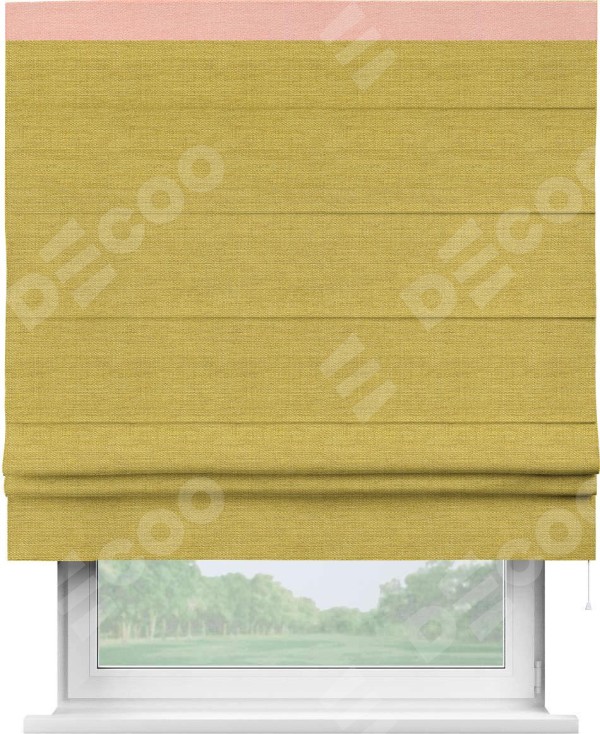 Римская штора «Кортин» с кантом Кинг, для проема, ткань лён светло-салатовый