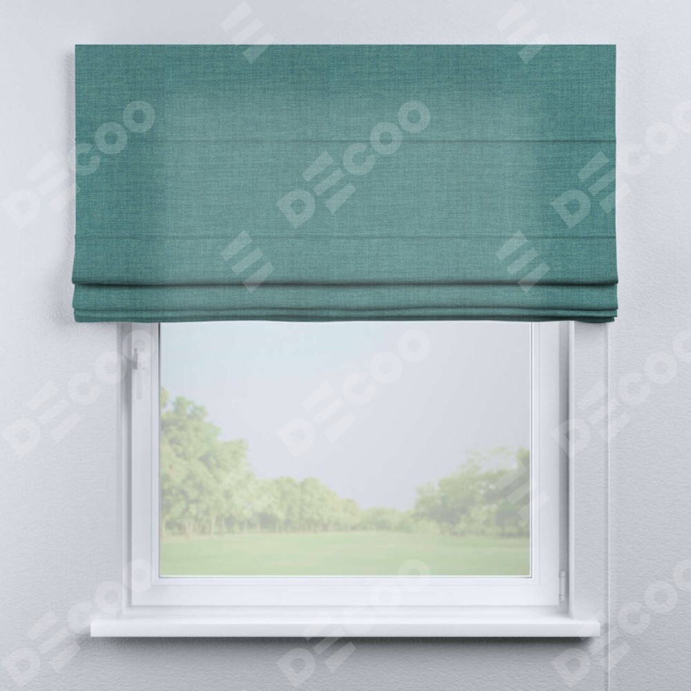 Римская штора «Кортин» для проема, ткань лён бирюза