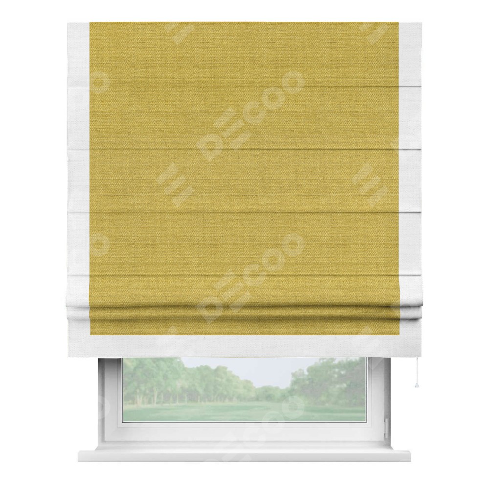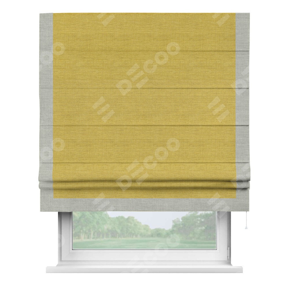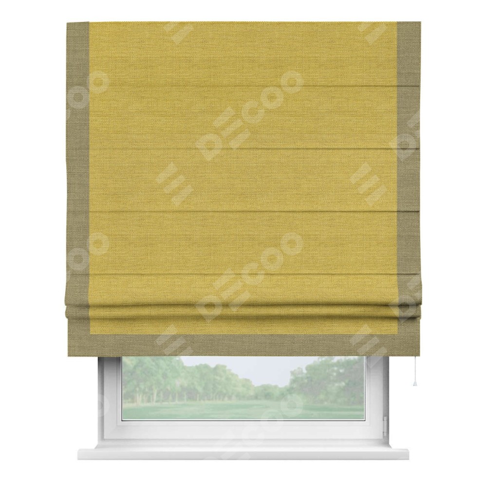 Римская штора производителя «Cortin», используется для проёма, пошита из ткани лён светло-салатовый, артикул 53438. Отделка шторы кантом «Виктория», ткань для канта используется из льна разной расцветки на выбор. Имеет универсальный механизм и подходит для монтажа: на потолок, на стену и в нишу.