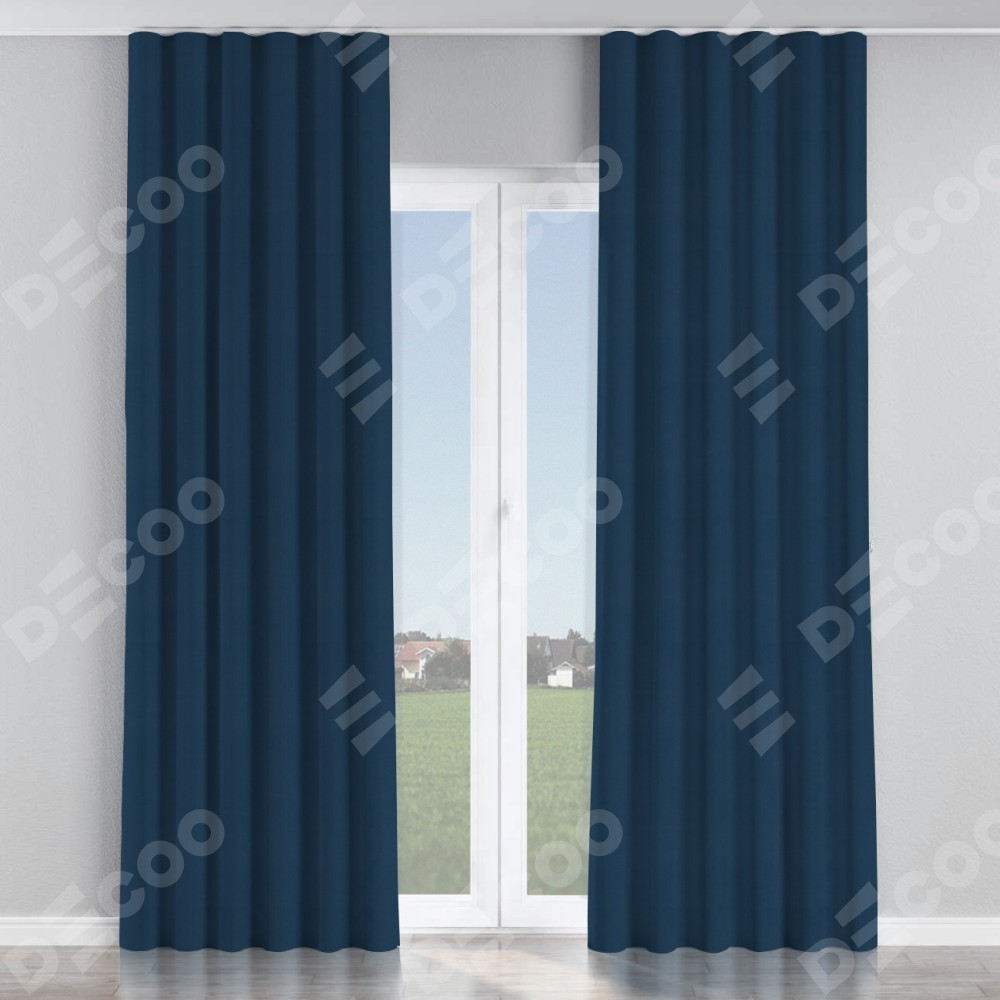 Комплект прямых штор, от производителя «Cortin», пошиты из ткани блэкаут однотонный синий, артикул ткани 29327. С изнаночной стороны в верхней части штор пристрачивается шторная лента с декоративными складками «Волна». Для создания элегантных складок прямые шторы шьются по стандарту с коэффициентом 1:2 (на 100 см. ширины проёма 200 см. ширины ткани).