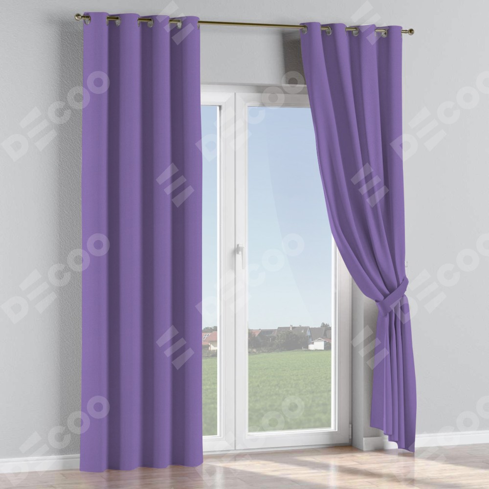 Комплект прямых штор, от производителя «Cortin», пошиты из ткани блэкаут однотонный сиреневый, артикул ткани 88305. Данная модель пошита на люверсах, комплектуется на выбор круглым карнизом и подходит для монтажа на стену или потолок. Прямые шторы на люверсах шьются по стандарту с коэффициентом 1/2 (на 100 см. ширины проёма 200 см. ширины ткани), отличительным преимуществом данной модели является простой способ монтажа. Достаточно повесить ее на трубу и штора готова!