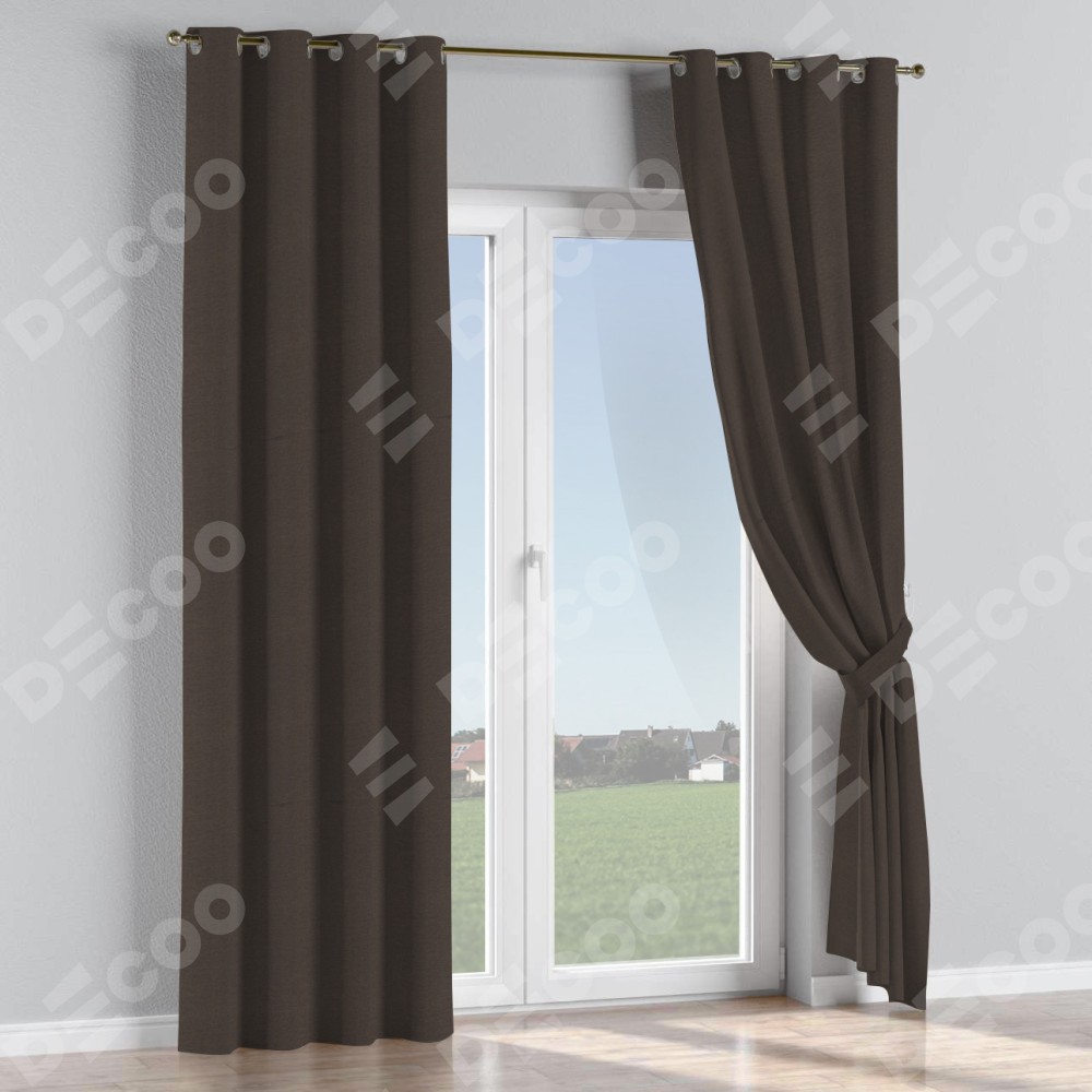 Комплект прямых штор, от производителя «Cortin», пошиты из ткани лён димаут венге, артикул ткани 85410. Данная модель пошита на люверсах, комплектуется на выбор круглым карнизом и подходит для монтажа на стену или потолок. Прямые шторы на люверсах шьются по стандарту с коэффициентом 1/2 (на 100 см. ширины проёма 200 см. ширины ткани), отличительным преимуществом данной модели является простой способ монтажа. Достаточно повесить ее на трубу и штора готова!