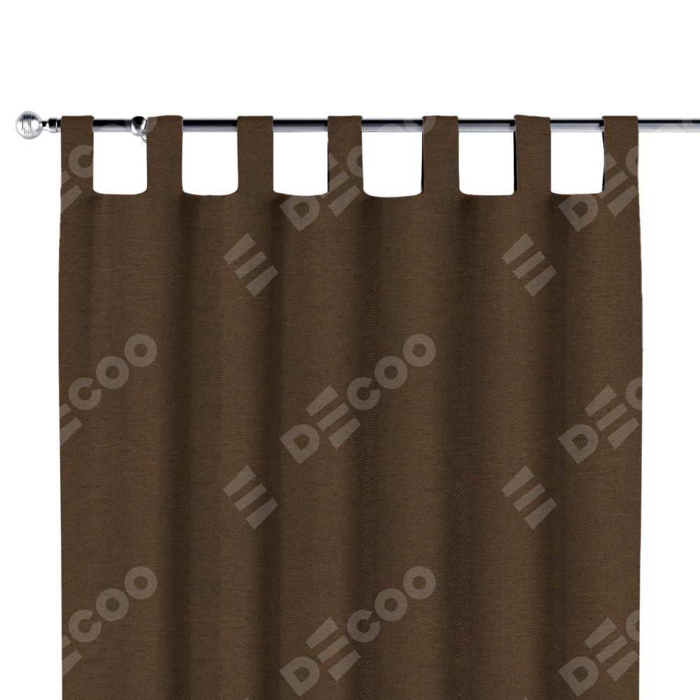 Комплект прямых штор, от производителя «Cortin», пошиты из ткани лён димаут тёмно-коричневый, артикул ткани 83030. Данная модель пошита на петлях, комплектуется на выбор круглым карнизом и подходит для монтажа на стену или потолок. Прямые шторы на петлях шьются по стандарту с коэффициентом 1/2 (на 100 см. ширины проёма 200 см. ширины ткани), отличительным преимуществом данной модели является простой способ монтажа. Достаточно повесить ее на трубу и штора готова!