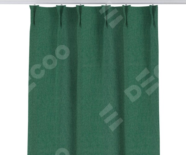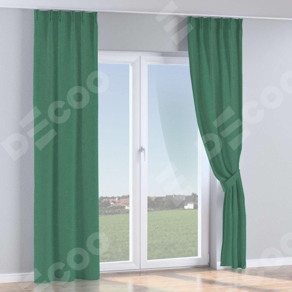 Комплект прямых штор, от производителя «Cortin», пошиты из ткани твид блэкаут зелёный, артикул ткани 21589. С изнаночной стороны в верхней части штор пристрачивается шторная лента с декоративными складками «Кустик». Для создания элегантных складок прямые шторы шьются по стандарту с коэффициентом 1:2 (на 100 см. ширины проёма 200 см. ширины ткани).