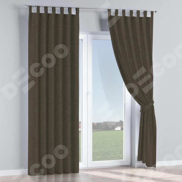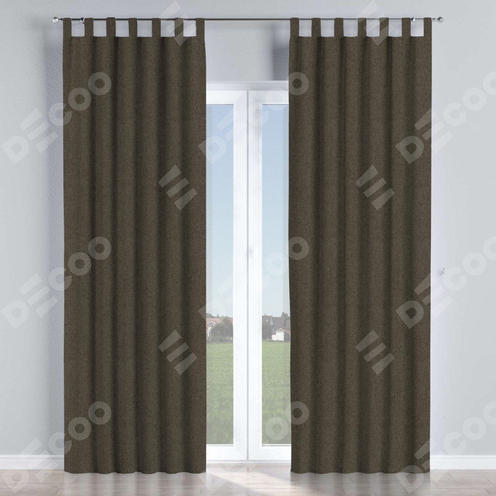 Комплект прямых штор, от производителя «Cortin», пошиты из ткани твид блэкаут тёмно-коричневый, артикул ткани 21584. Данная модель пошита на петлях, комплектуется на выбор круглым карнизом и подходит для монтажа на стену или потолок. Прямые шторы на петлях шьются по стандарту с коэффициентом 1/2 (на 100 см. ширины проёма 200 см. ширины ткани), отличительным преимуществом данной модели является простой способ монтажа. Достаточно повесить ее на трубу и штора готова!
