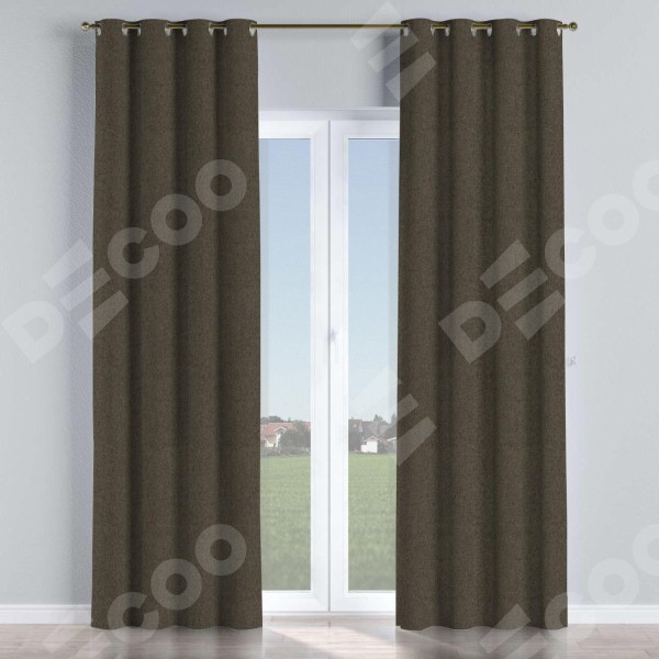 Комплект штор на люверсах твид блэкаут тёмно-коричневый