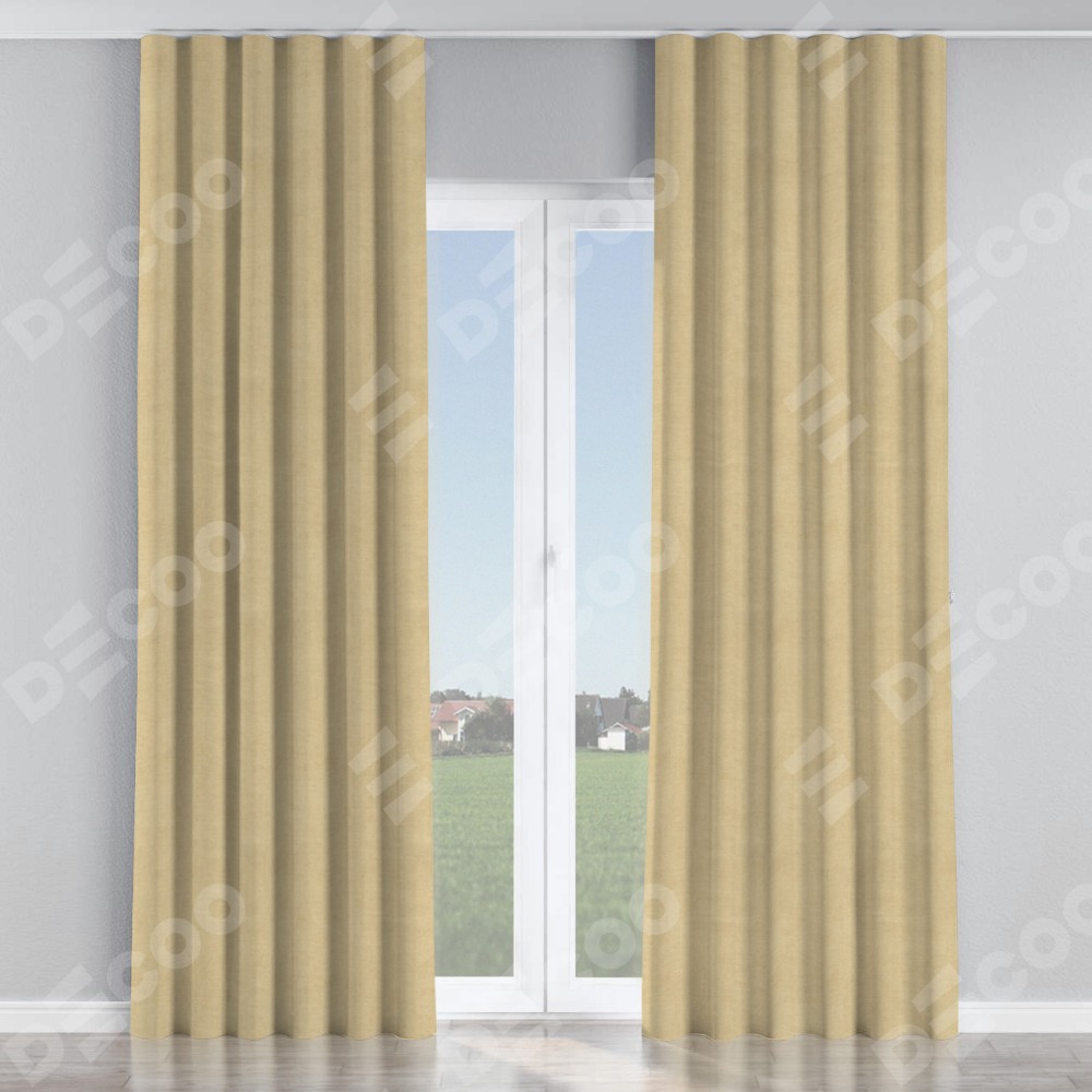 Комплект прямых штор, от производителя «Cortin», пошиты из ткани вельвет бежевый, артикул ткани 85538. С изнаночной стороны в верхней части штор пристрачивается шторная лента с декоративными складками «Волна». Для создания элегантных складок прямые шторы шьются по стандарту с коэффициентом 1:2 (на 100 см. ширины проёма 200 см. ширины ткани).