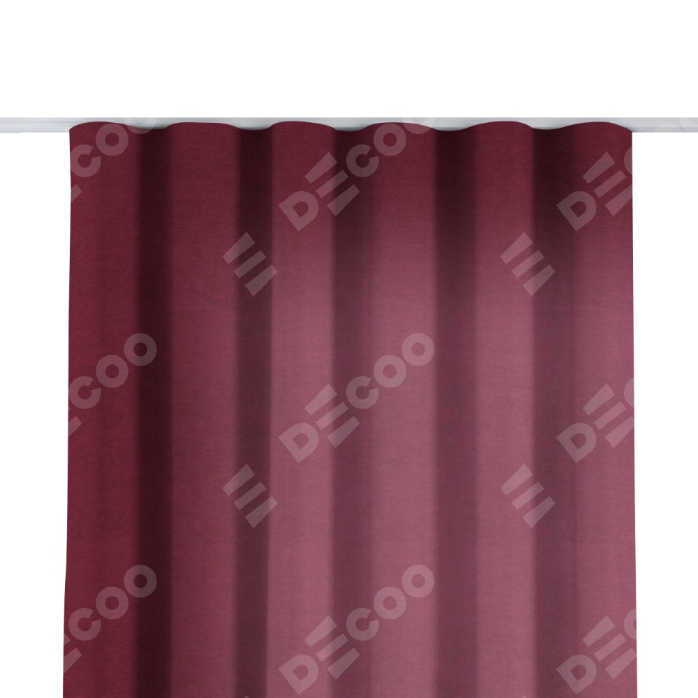 Комплект прямых штор, от производителя «Cortin», пошиты из ткани вельвет бордовый, артикул ткани 85553. С изнаночной стороны в верхней части штор пристрачивается шторная лента с декоративными складками «Волна». Для создания элегантных складок прямые шторы шьются по стандарту с коэффициентом 1:2 (на 100 см. ширины проёма 200 см. ширины ткани).