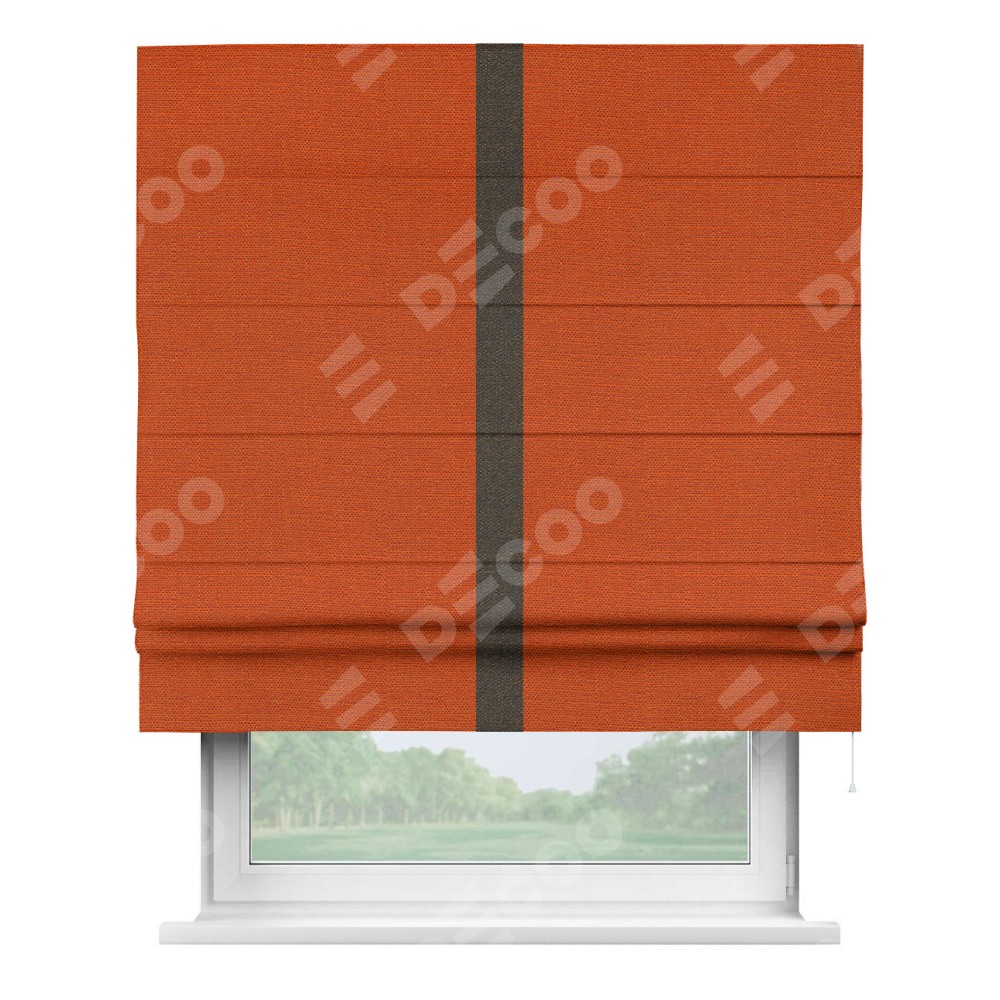 Римская штора производителя «Cortin», используется для проёма, пошита из ткани лён терракотовый, артикул 53440. Отделка шторы кантом «Хайвэй», ткань для канта используется из льна разной расцветки на выбор. Имеет универсальный механизм и подходит для монтажа: на потолок, на стену и в нишу.