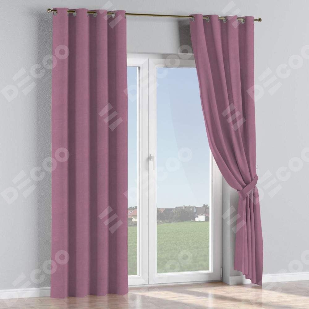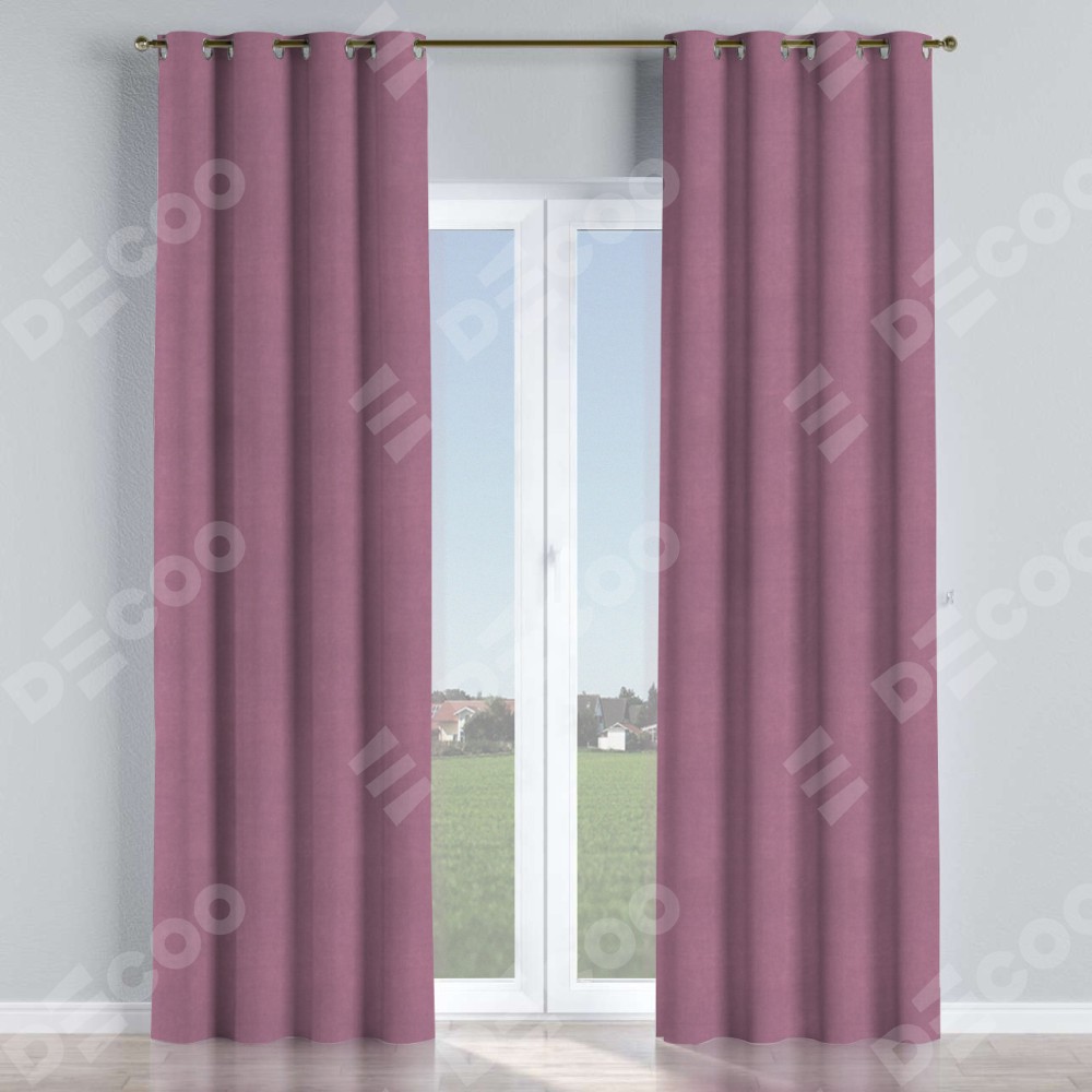 Комплект прямых штор, от производителя «Cortin», пошиты из ткани вельвет лиловый, артикул ткани 17752. Данная модель пошита на люверсах, комплектуется на выбор круглым карнизом и подходит для монтажа на стену или потолок. Прямые шторы на люверсах шьются по стандарту с коэффициентом 1/2 (на 100 см. ширины проёма 200 см. ширины ткани), отличительным преимуществом данной модели является простой способ монтажа. Достаточно повесить ее на трубу и штора готова!
