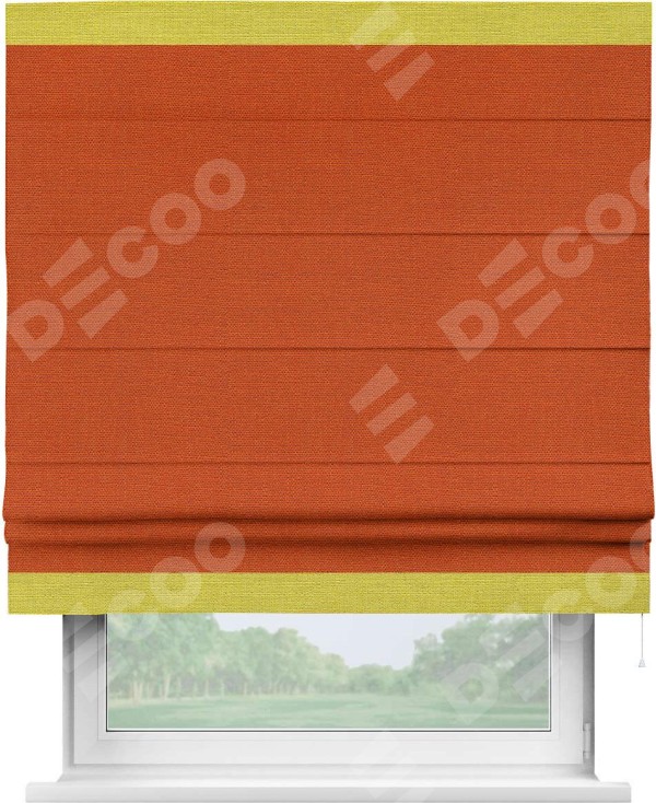 Римская штора «Кортин» с кантом Горизонт, для проема, ткань лён терракотовый