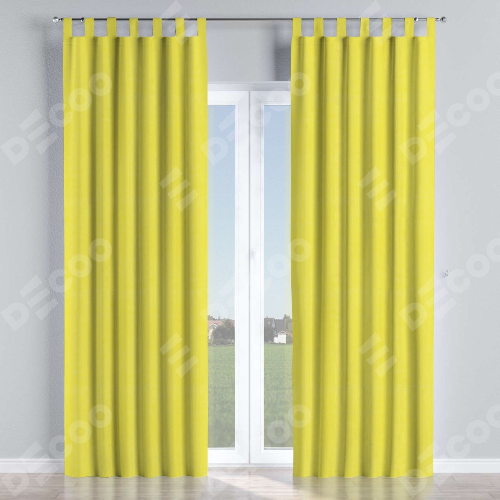 Комплект прямых штор, от производителя «Cortin», пошиты из ткани вельвет светло-желтый, артикул ткани 30997. Данная модель пошита на петлях, комплектуется на выбор круглым карнизом и подходит для монтажа на стену или потолок. Прямые шторы на петлях шьются по стандарту с коэффициентом 1/2 (на 100 см. ширины проёма 200 см. ширины ткани), отличительным преимуществом данной модели является простой способ монтажа. Достаточно повесить ее на трубу и штора готова!
