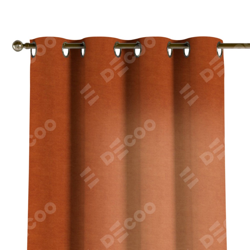 Комплект прямых штор, от производителя «Cortin», пошиты из ткани вельвет терракотовый, артикул ткани 85548. Данная модель пошита на люверсах, комплектуется на выбор круглым карнизом и подходит для монтажа на стену или потолок. Прямые шторы на люверсах шьются по стандарту с коэффициентом 1/2 (на 100 см. ширины проёма 200 см. ширины ткани), отличительным преимуществом данной модели является простой способ монтажа. Достаточно повесить ее на трубу и штора готова!