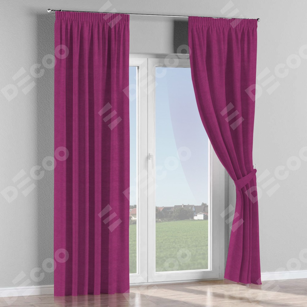 Комплект прямых штор, от производителя «Cortin», пошиты из ткани вельвет фиолетовый, артикул ткани 85552. С изнаночной стороны в верхней части штор пристрачивается шторная лента с декоративными складками «Карандаш». Для создания элегантных складок прямые шторы шьются по стандарту с коэффициентом 1:2 (на 100 см. ширины проёма 200 см. ширины ткани).