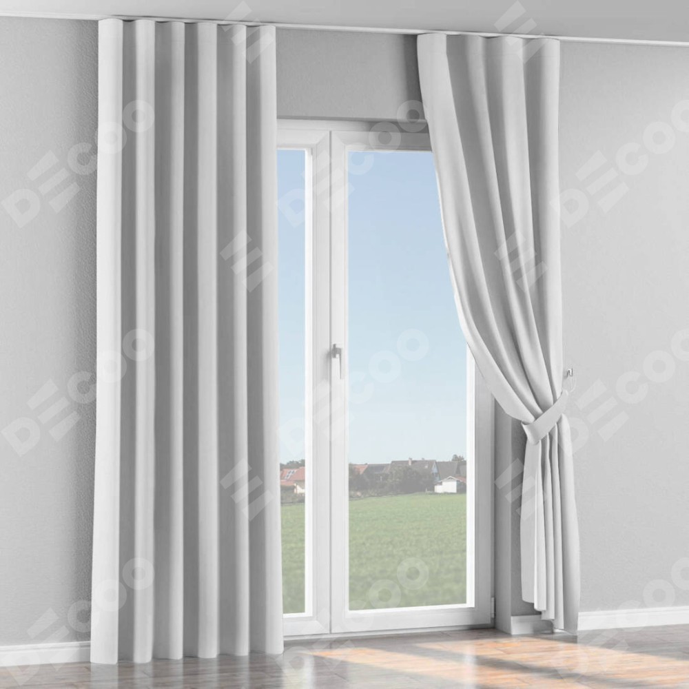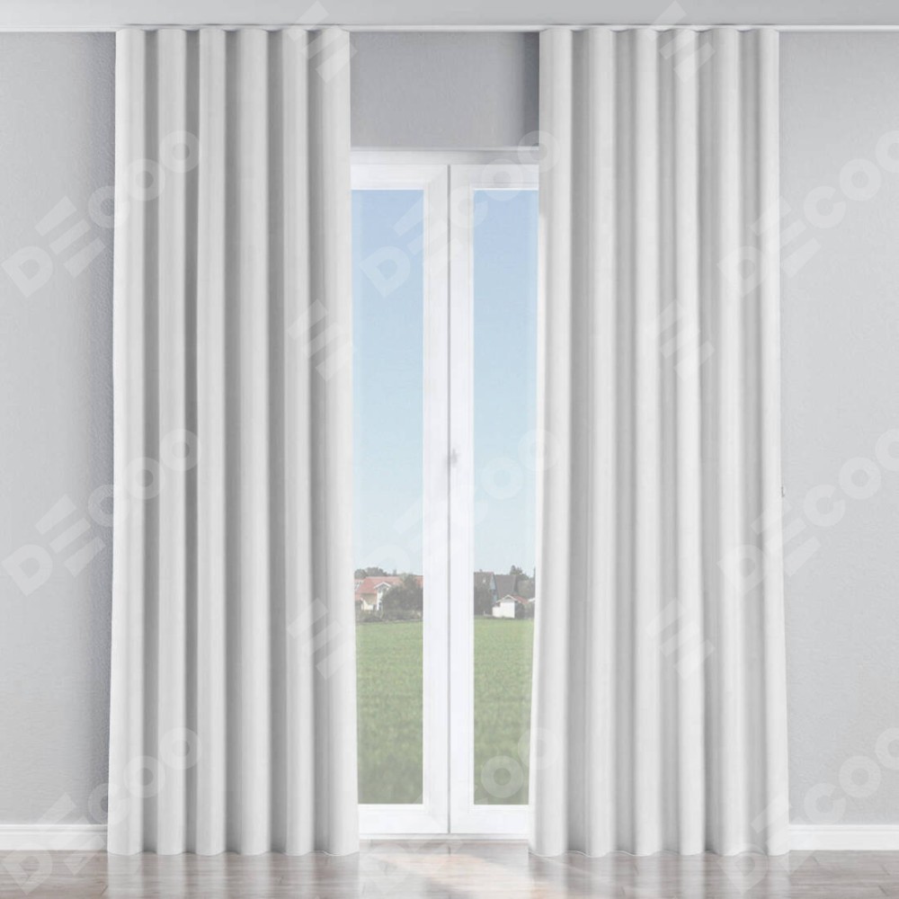 Комплект прямых штор, от производителя «Cortin», пошиты из ткани лён белый, артикул ткани 53430. С изнаночной стороны в верхней части штор пристрачивается шторная лента с декоративными складками «Волна». Для создания элегантных складок прямые шторы шьются по стандарту с коэффициентом 1:2 (на 100 см. ширины проёма 200 см. ширины ткани).