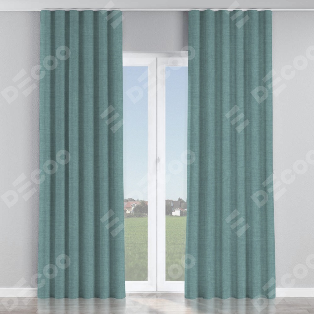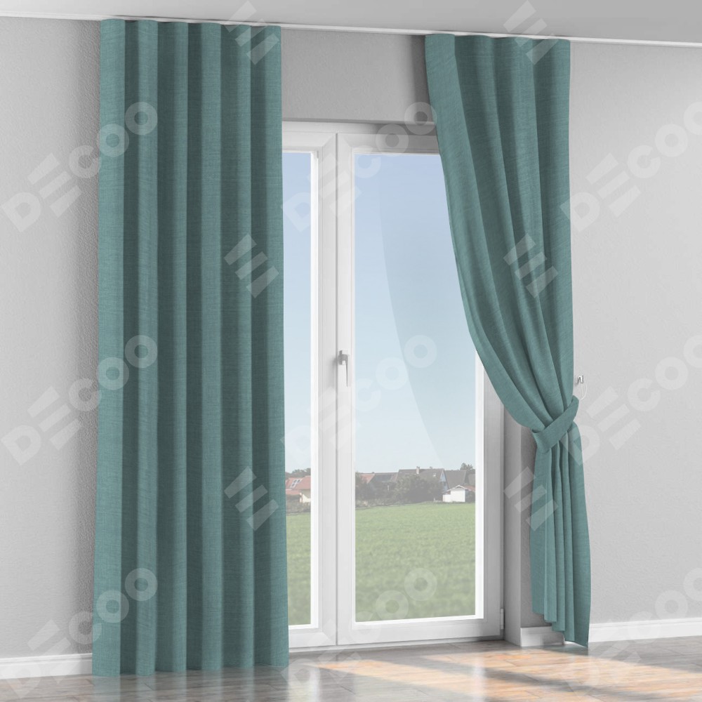 Комплект прямых штор, от производителя «Cortin», пошиты из ткани лён голубой, артикул ткани 74736. С изнаночной стороны в верхней части штор пристрачивается шторная лента с декоративными складками «Волна». Для создания элегантных складок прямые шторы шьются по стандарту с коэффициентом 1:2 (на 100 см. ширины проёма 200 см. ширины ткани).