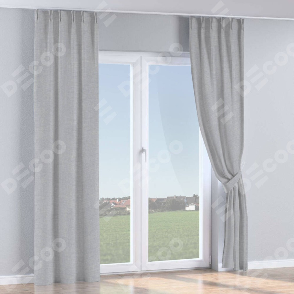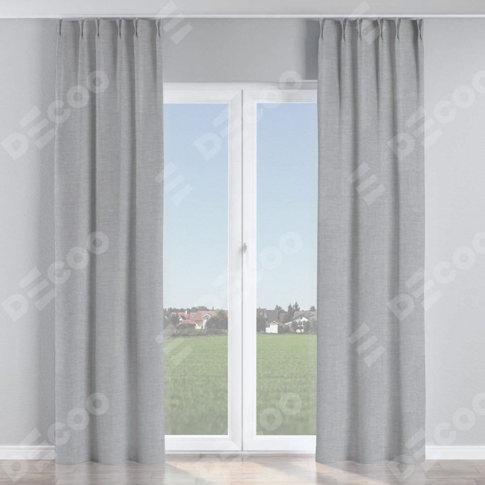 Комплект прямых штор, от производителя «Cortin», пошиты из ткани лён серый, артикул ткани 7440. С изнаночной стороны в верхней части штор пристрачивается шторная лента с декоративными складками «Кустик». Для создания элегантных складок прямые шторы шьются по стандарту с коэффициентом 1:2 (на 100 см. ширины проёма 200 см. ширины ткани).