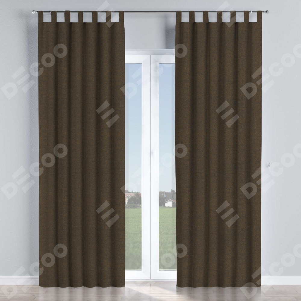 Комплект прямых штор, от производителя «Cortin», пошиты из ткани лён тёмно-коричневый, артикул ткани 53444. Данная модель пошита на петлях, комплектуется на выбор круглым карнизом и подходит для монтажа на стену или потолок. Прямые шторы на петлях шьются по стандарту с коэффициентом 1/2 (на 100 см. ширины проёма 200 см. ширины ткани), отличительным преимуществом данной модели является простой способ монтажа. Достаточно повесить ее на трубу и штора готова!