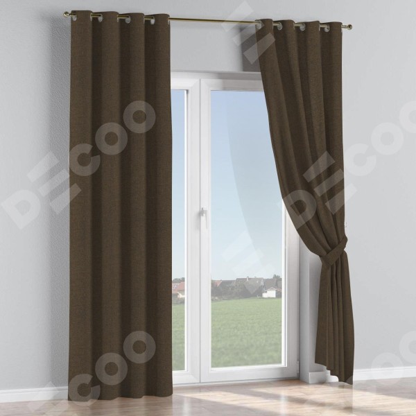 Комплект прямых штор, от производителя «Cortin», пошиты из ткани лён тёмно-коричневый, артикул ткани 53444. Данная модель пошита на люверсах, комплектуется на выбор круглым карнизом и подходит для монтажа на стену или потолок. Прямые шторы на люверсах шьются по стандарту с коэффициентом 1/2 (на 100 см. ширины проёма 200 см. ширины ткани), отличительным преимуществом данной модели является простой способ монтажа. Достаточно повесить ее на трубу и штора готова!