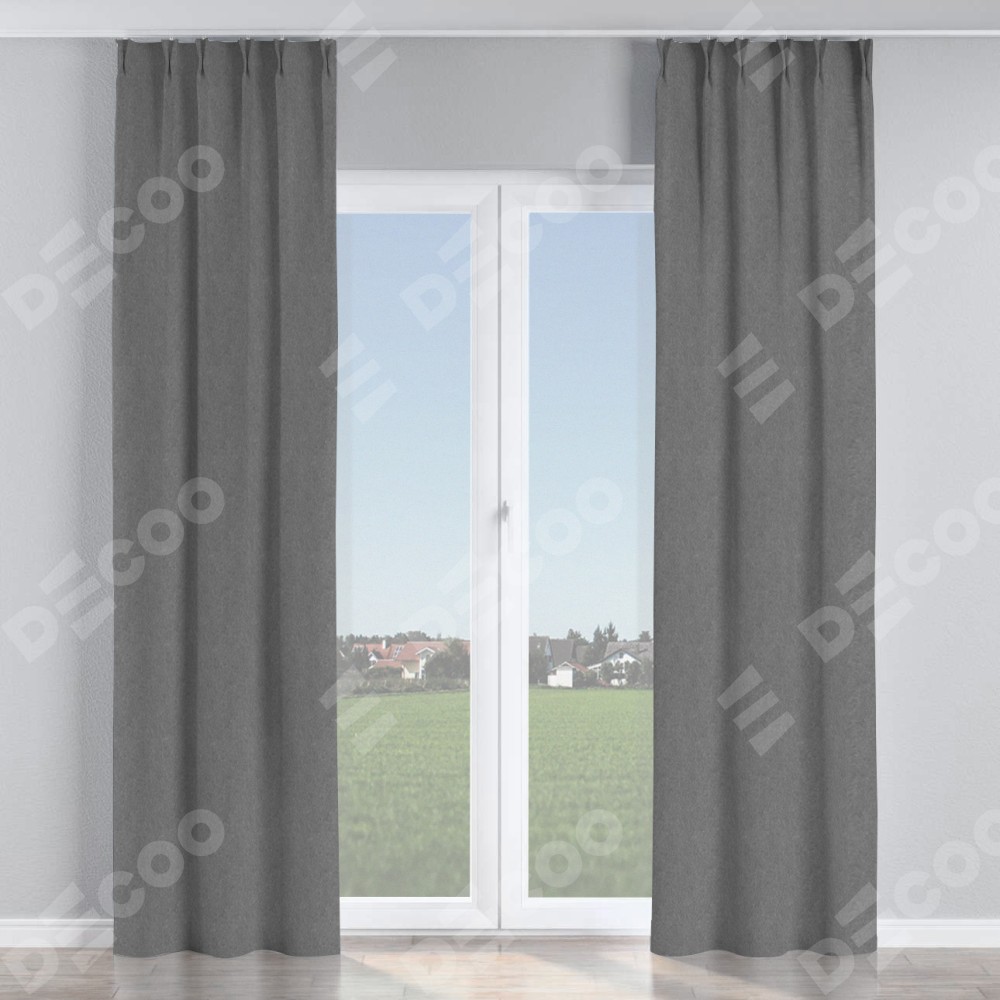 Комплект прямых штор, от производителя «Cortin», пошиты из ткани софт однотонный серый, артикул ткани 70605. С изнаночной стороны в верхней части штор пристрачивается шторная лента с декоративными складками «Кустик». Для создания элегантных складок прямые шторы шьются по стандарту с коэффициентом 1:2 (на 100 см. ширины проёма 200 см. ширины ткани).
