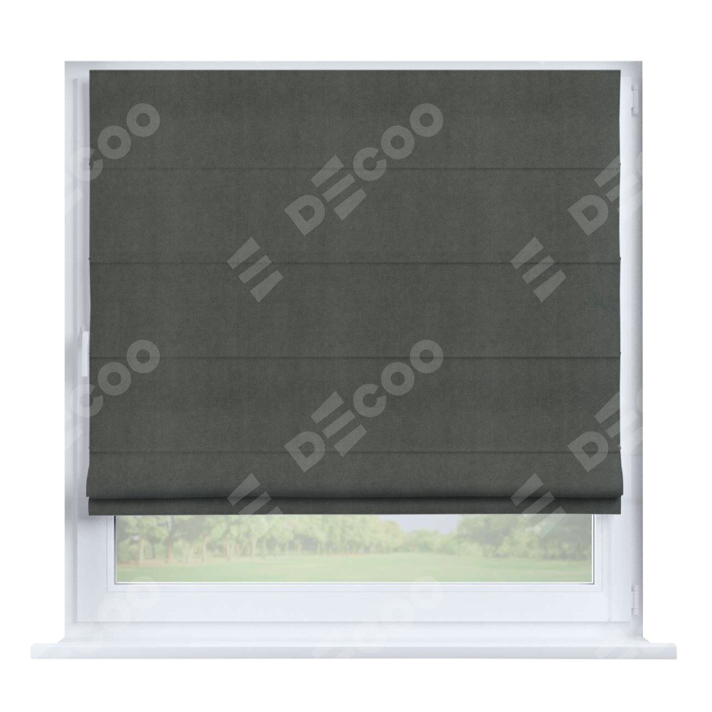 Римская штора производителя «Cortin», устанавливается на створку окна, пошита из ткани вельвет тёмно-серый, артикул 85542. Штора шьётся по индивидуальным размерам, для данного типа римской шторы возможная ширина от 35 до 150 см., высота до 250 см.