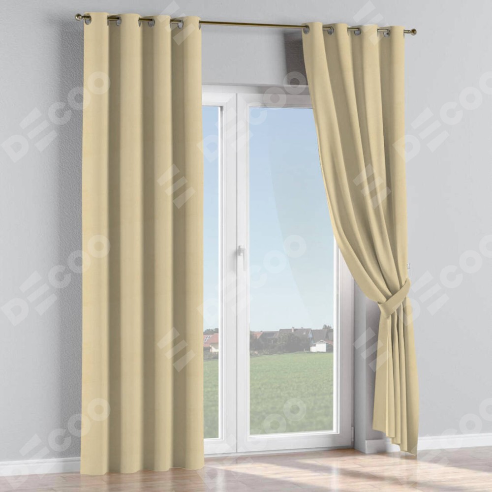 Комплект прямых штор, от производителя «Cortin», пошиты из ткани блэкаут однотонный милано латте, артикул ткани 05. Данная модель пошита на люверсах, комплектуется на выбор круглым карнизом и подходит для монтажа на стену или потолок. Прямые шторы на люверсах шьются по стандарту с коэффициентом 1/2 (на 100 см. ширины проёма 200 см. ширины ткани), отличительным преимуществом данной модели является простой способ монтажа. Достаточно повесить ее на трубу и штора готова!