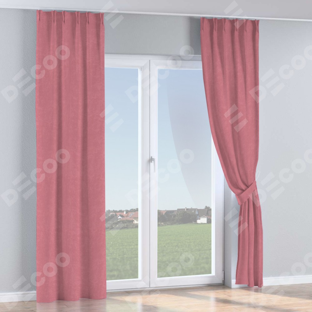 Комплект прямых штор, от производителя «Cortin», пошиты из ткани софт однотонный розовый, артикул ткани 42926. С изнаночной стороны в верхней части штор пристрачивается шторная лента с декоративными складками «Кустик». Для создания элегантных складок прямые шторы шьются по стандарту с коэффициентом 1:2 (на 100 см. ширины проёма 200 см. ширины ткани).