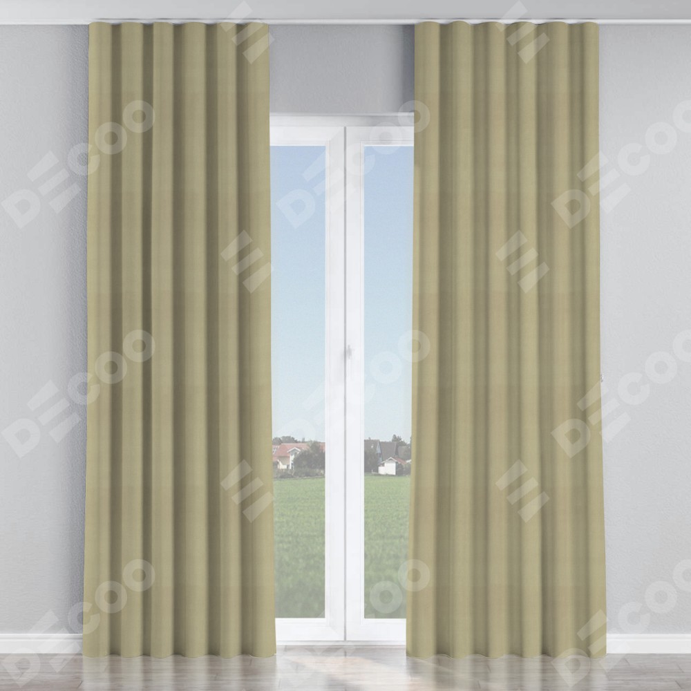 Комплект прямых штор, от производителя «Cortin», пошиты из ткани pipa блэкаут светло-бежевый, артикул ткани 02. С изнаночной стороны в верхней части штор пристрачивается шторная лента с декоративными складками «Волна». Для создания элегантных складок прямые шторы шьются по стандарту с коэффициентом 1:2 (на 100 см. ширины проёма 200 см. ширины ткани).