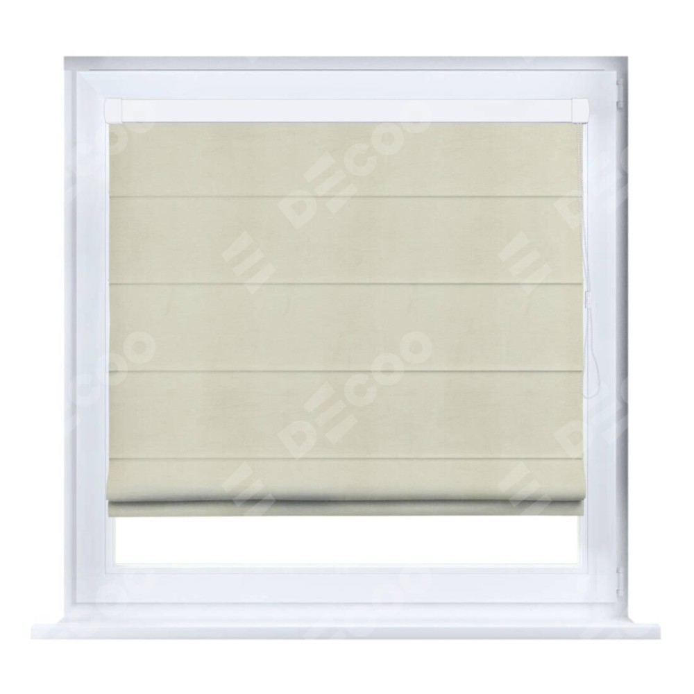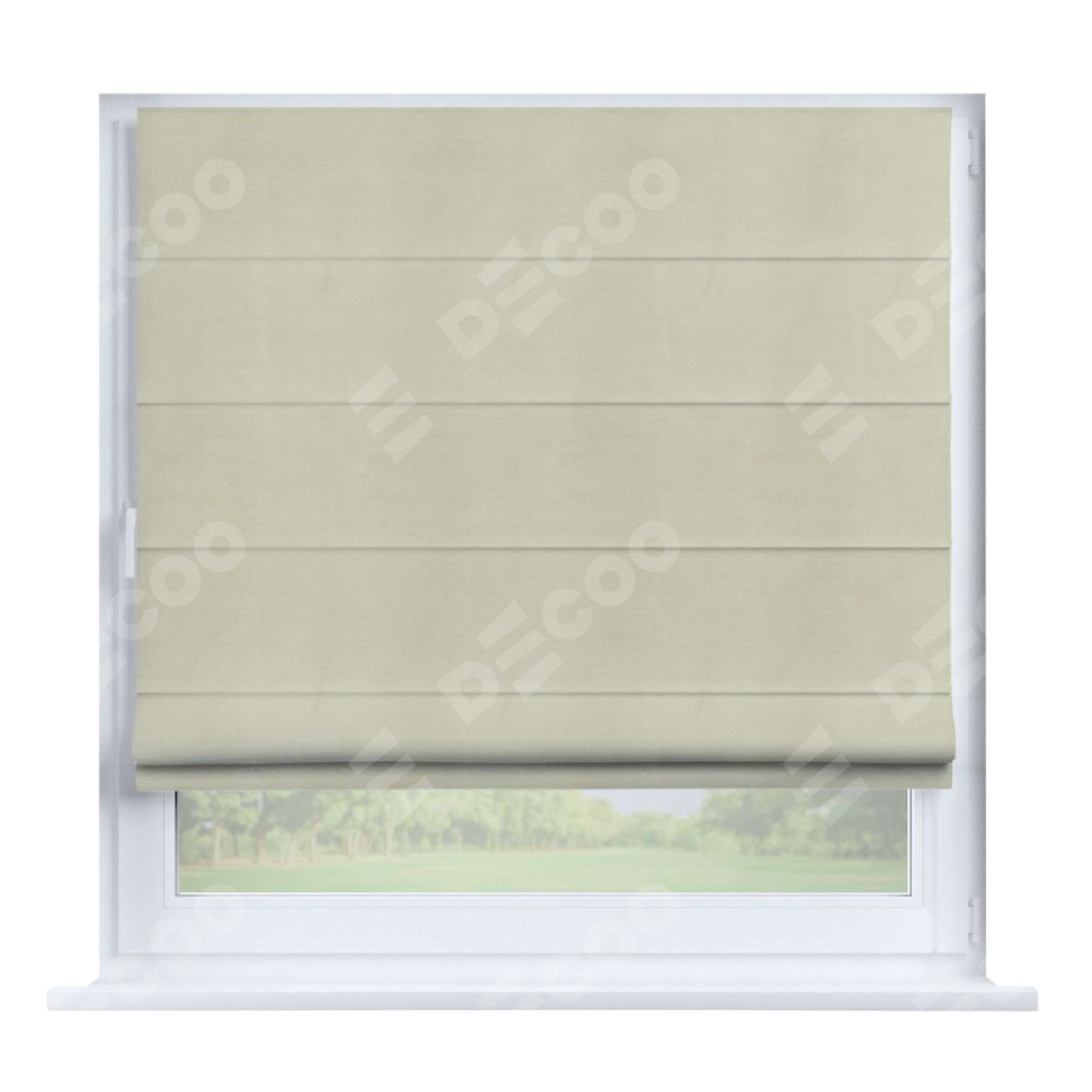 Римская штора производителя «Cortin», устанавливается на створку окна, пошита из ткани бархат молочный, артикул 21409. Штора шьётся по индивидуальным размерам, для данного типа римской шторы возможная ширина от 35 до 150 см., высота до 250 см.