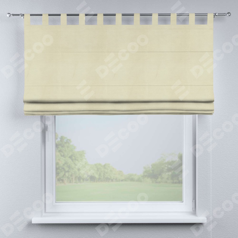 Римская штора производителя «Cortin», используется для проёма, пошита из ткани бархат молочный, артикул ткани 21409. Данная модель пошита на петлях, комплектуется на выбор круглым карнизом и подходит для монтажа на стену. Римская штора на петлях имеет простую систему регулировки высоты, отличительным преимуществом данной модели является простой способ монтажа. Достаточно повесить ее на трубу и штора готова!