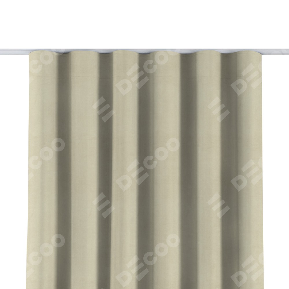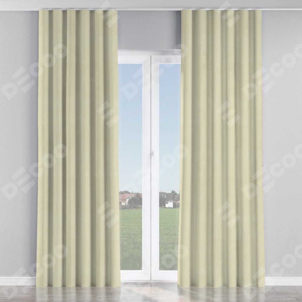 Комплект прямых штор, от производителя «Cortin», пошиты из ткани бархат молочный, артикул ткани 21409. С изнаночной стороны в верхней части штор пристрачивается шторная лента с декоративными складками «Волна». Для создания элегантных складок прямые шторы шьются по стандарту с коэффициентом 1:2 (на 100 см. ширины проёма 200 см. ширины ткани).