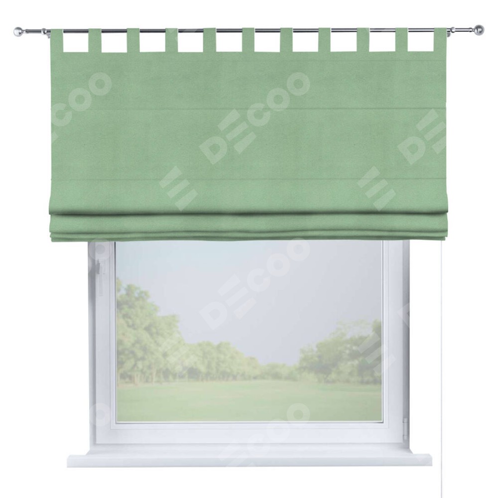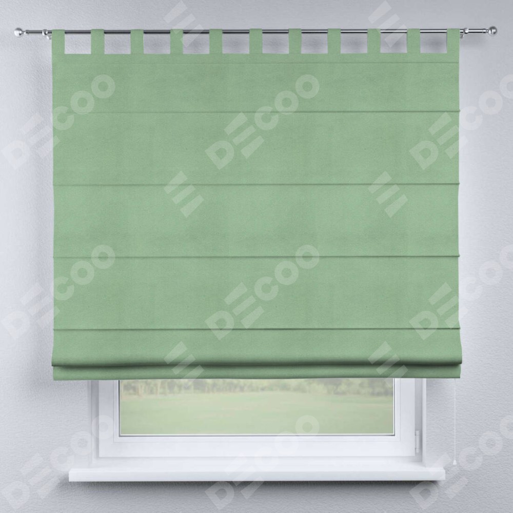 Римская штора производителя «Cortin», используется для проёма, пошита из ткани бархат оливковый, артикул ткани 18746. Данная модель пошита на петлях, комплектуется на выбор круглым карнизом и подходит для монтажа на стену. Римская штора на петлях имеет простую систему регулировки высоты, отличительным преимуществом данной модели является простой способ монтажа. Достаточно повесить ее на трубу и штора готова!