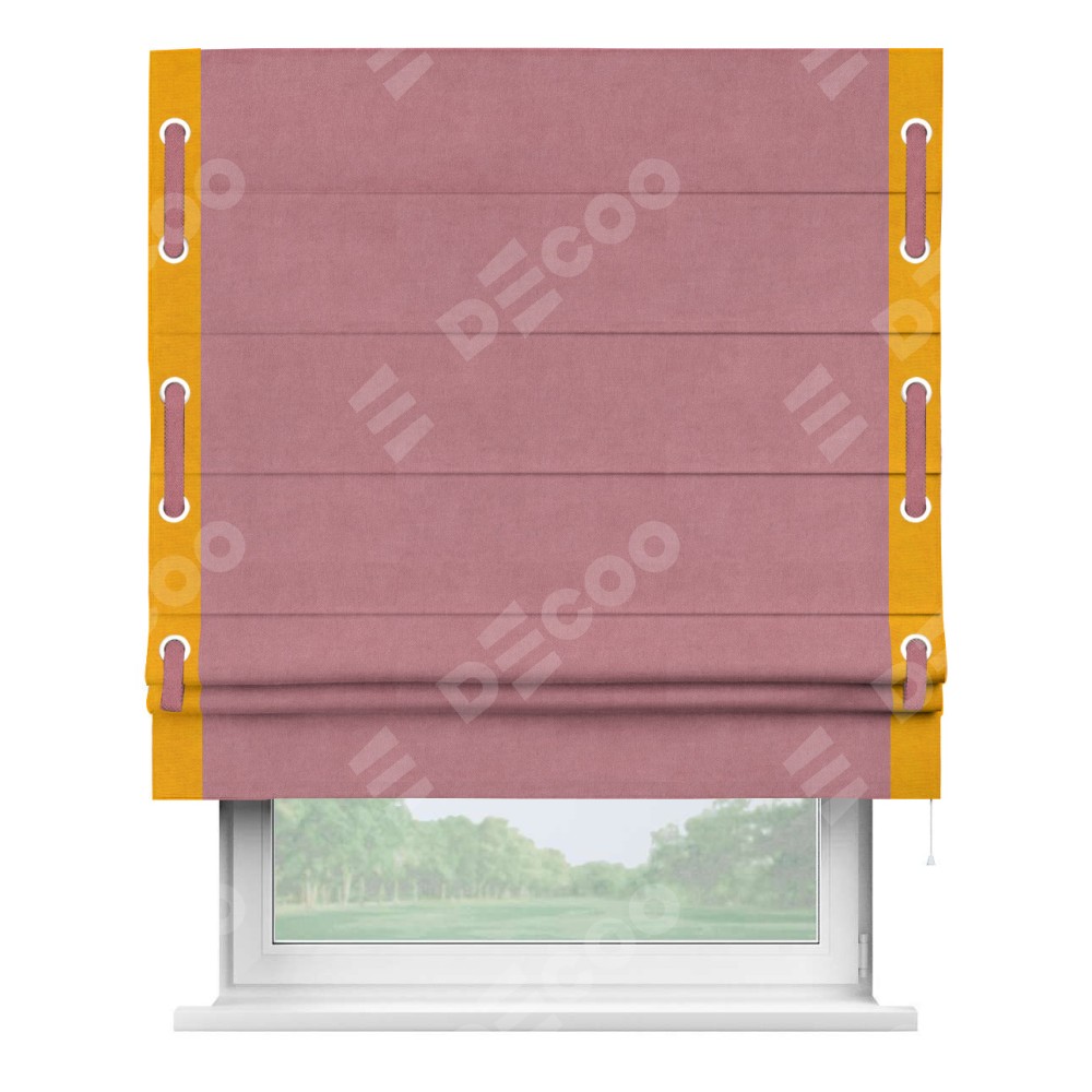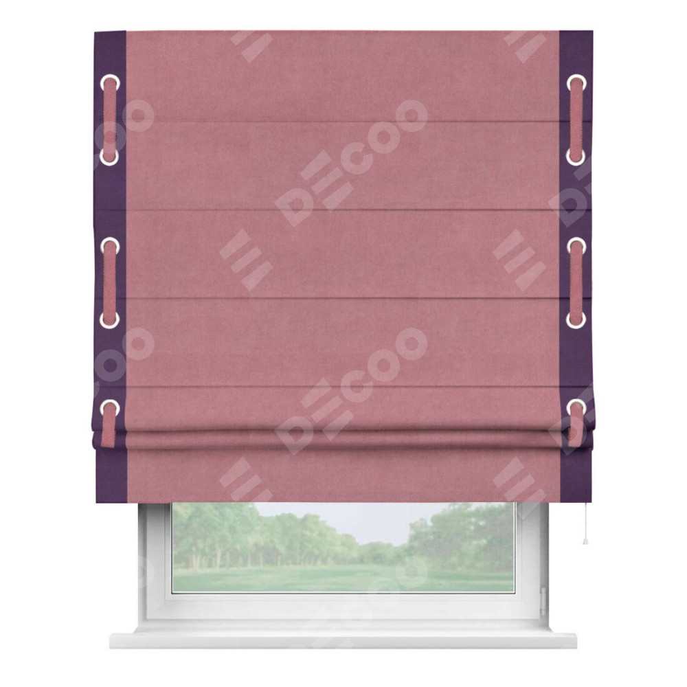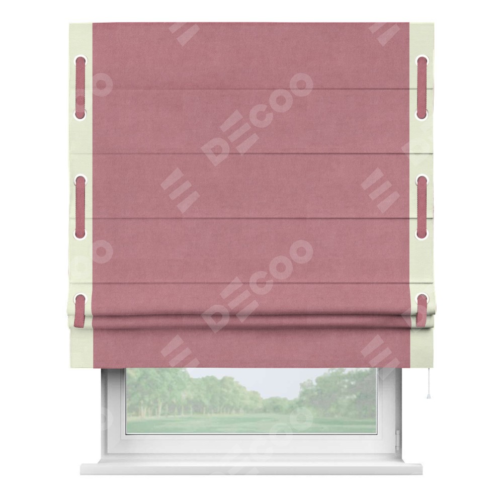 Римская штора «Кортин» с кантом Стрим Дуо (люверсы с пояском), для проема, ткань вельвет брусника