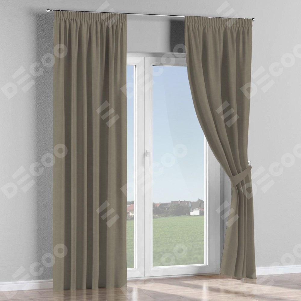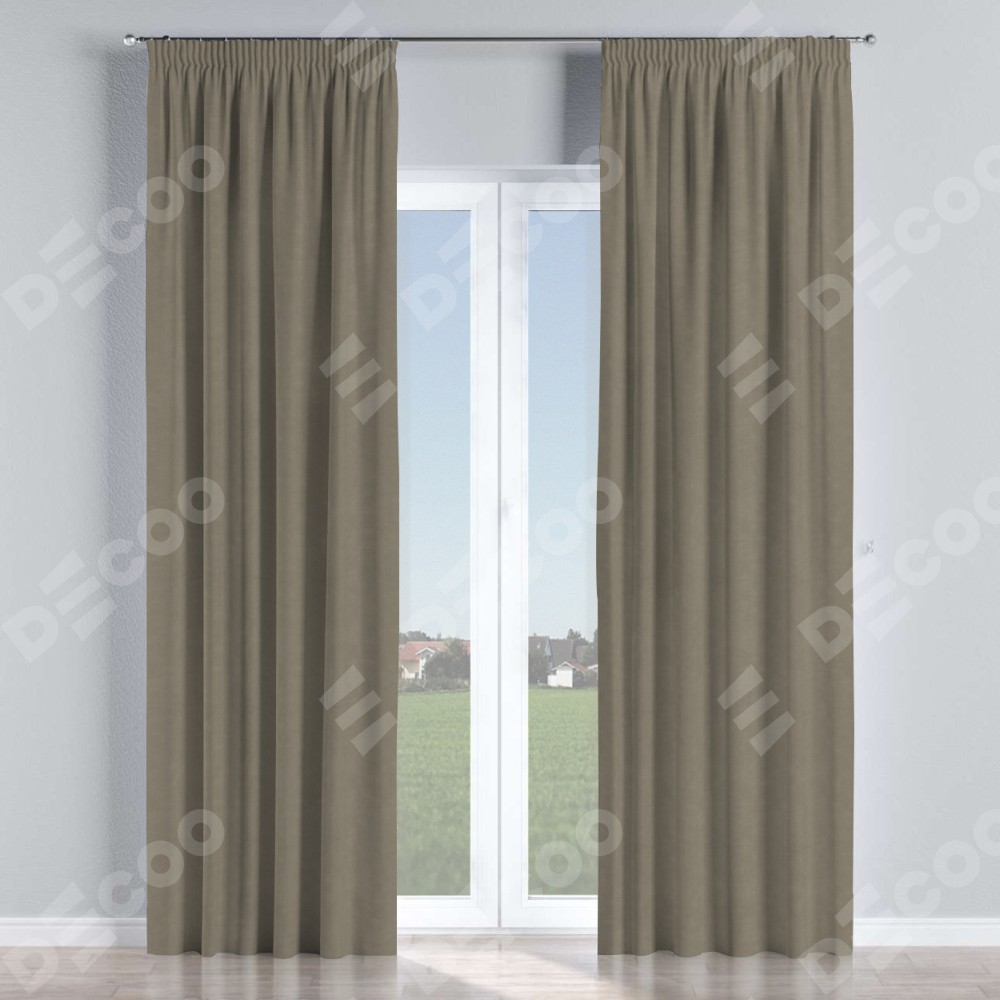 Комплект прямых штор, от производителя «Cortin», пошиты из ткани бархат ария, артикул ткани 31. С изнаночной стороны в верхней части штор пристрачивается шторная лента с декоративными складками «Карандаш». Для создания элегантных складок прямые шторы шьются по стандарту с коэффициентом 1:2 (на 100 см. ширины проёма 200 см. ширины ткани).