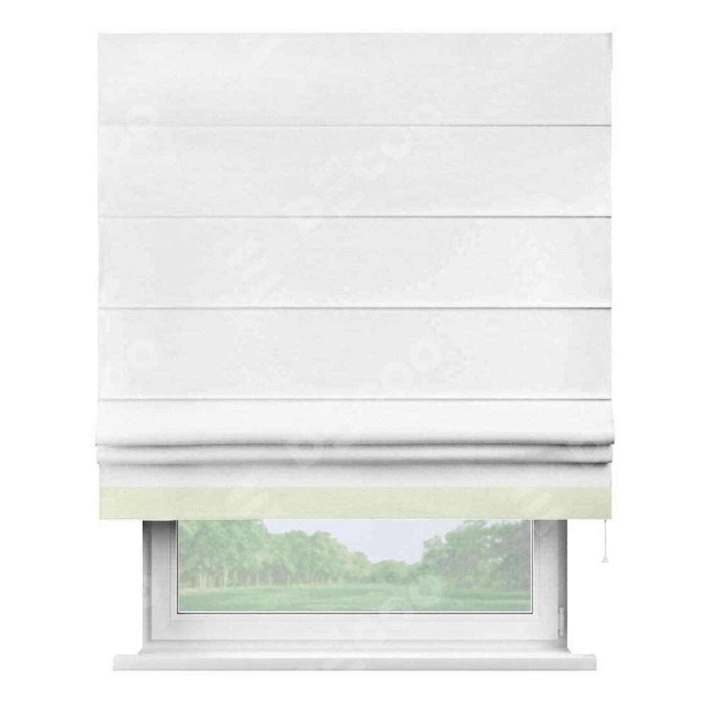 Римская штора производителя «Cortin», используется для проёма, пошита из ткани вельвет дымчато-белый, артикул ткани 85535. Отделка шторы кантом «Джестер», ткань для канта используется из вельвета разной расцветки на выбор. Имеет универсальный механизм и подходит для монтажа: на потолок, на стену и в нишу.