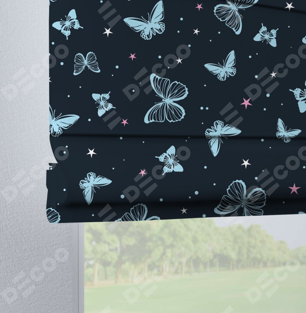 Римская штора производителя «Cortin», используется для проёма, пошита из ткани блэкаут с нанесением сублимационной печати «Неоновые бабочки». Данная модель пошита на петлях, комплектуется на выбор круглым карнизом и подходит для монтажа на стену. Римская штора на петлях имеет простую систему регулировки высоты, отличительным преимуществом данной модели является простой способ монтажа. Достаточно повесить ее на трубу и штора готова!