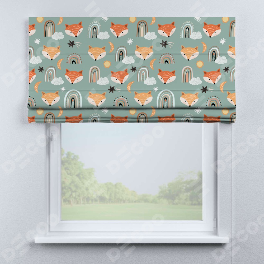 Римская штора производителя «Cortin», используется для проёма, пошита из ткани блэкаут с нанесением сублимационной печати «Озорные лисички». Имеет универсальный механизм и подходит для монтажа: на потолок, на стену и в нишу.