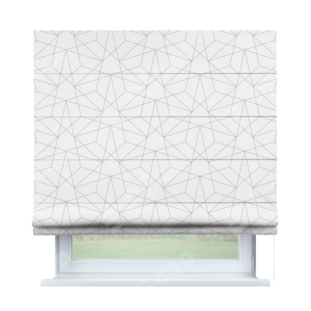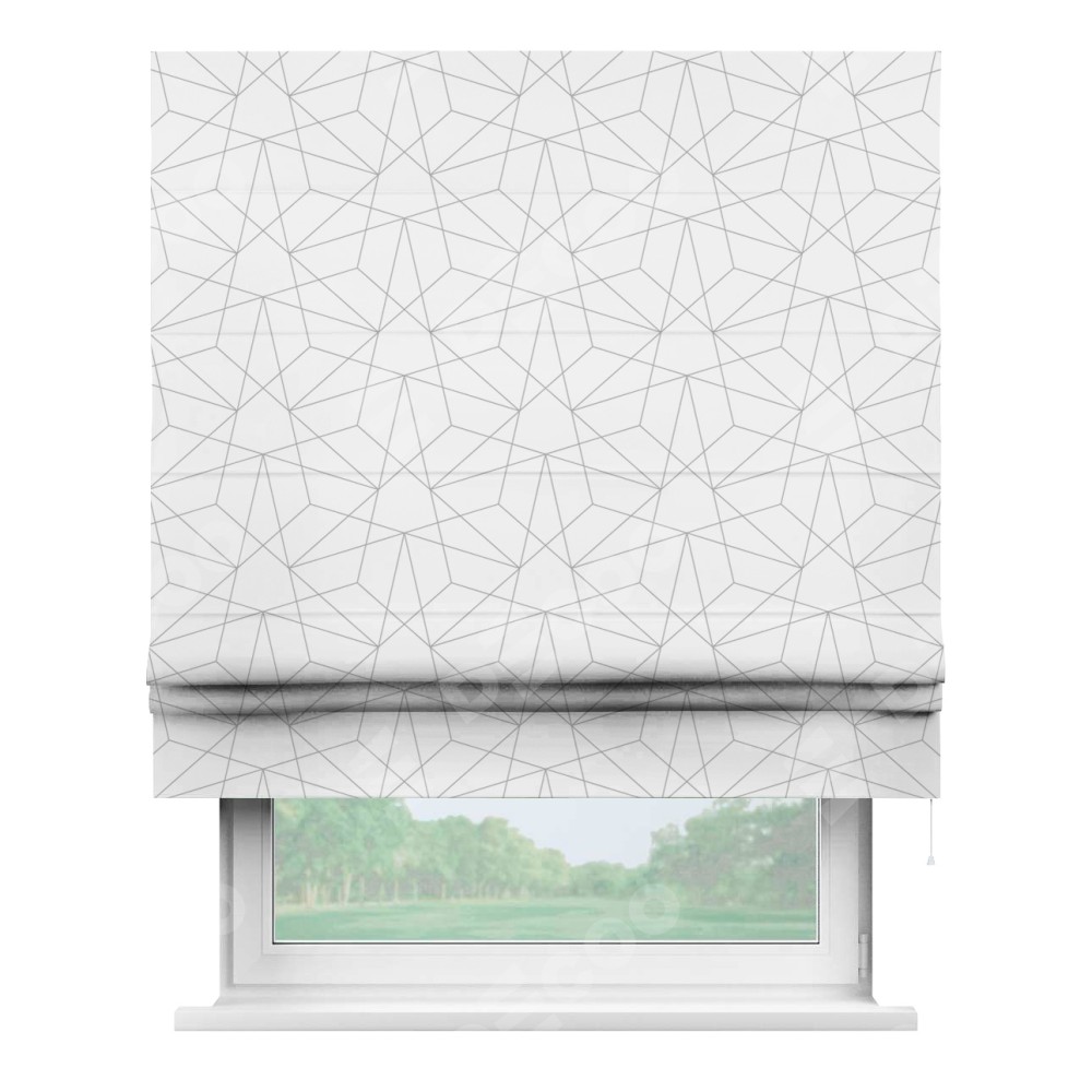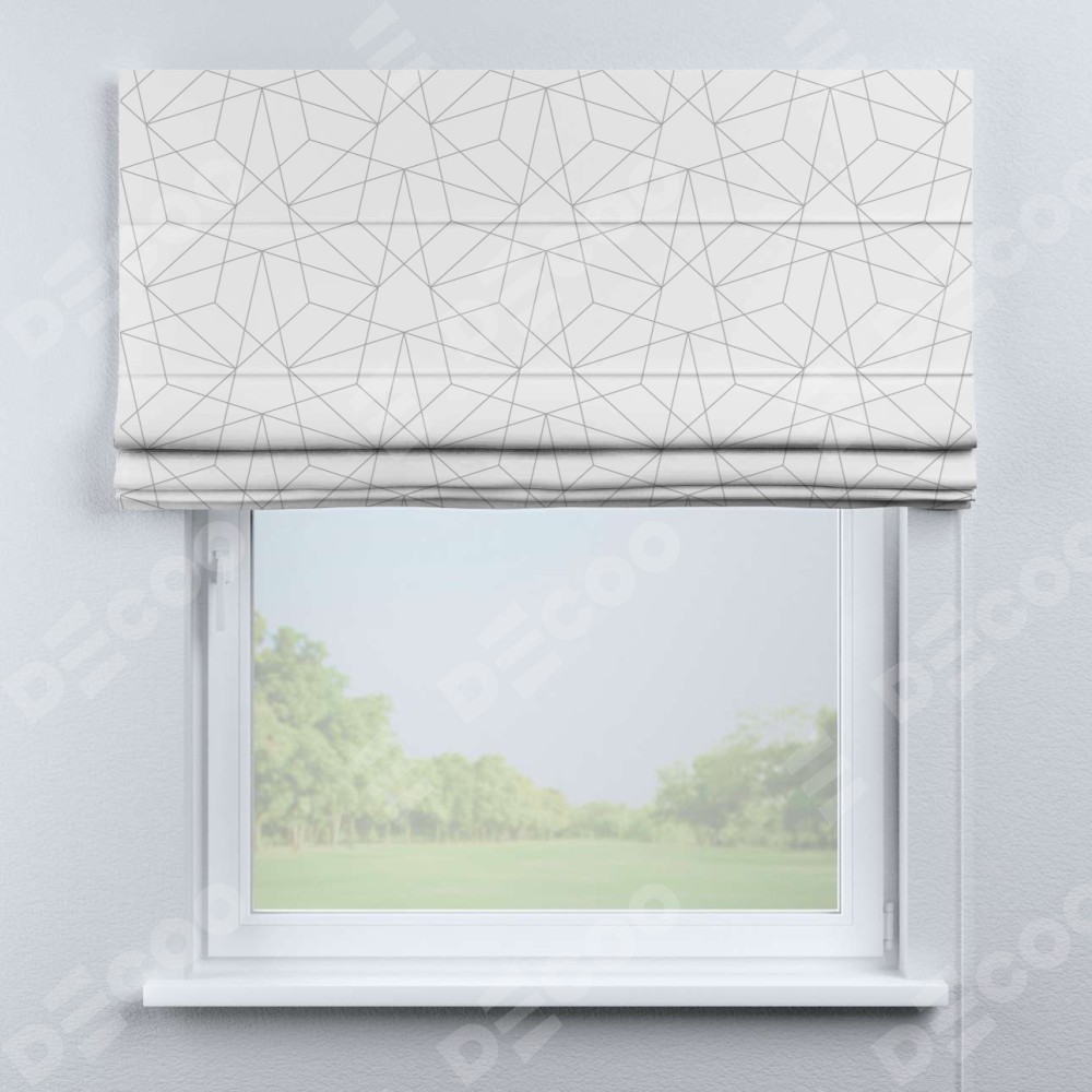 Римская штора производителя «Cortin», используется для проёма, пошита из ткани блэкаут с нанесением сублимационной печати «Простая геометрия». Имеет универсальный механизм и подходит для монтажа: на потолок, на стену и в нишу.