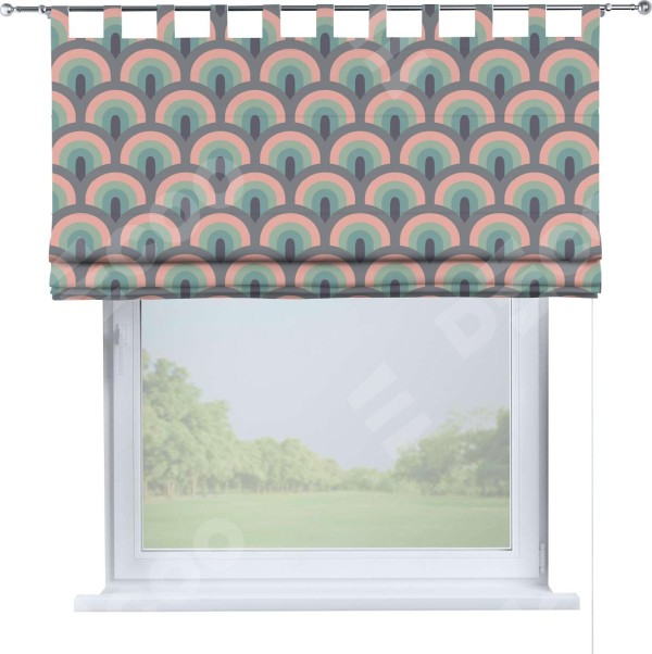 Римская штора производителя «Cortin», используется для проёма, пошита из ткани блэкаут с нанесением сублимационной печати «Ретро орнамент». Данная модель пошита на петлях, комплектуется на выбор круглым карнизом и подходит для монтажа на стену. Римская штора на петлях имеет простую систему регулировки высоты, отличительным преимуществом данной модели является простой способ монтажа. Достаточно повесить ее на трубу и штора готова!