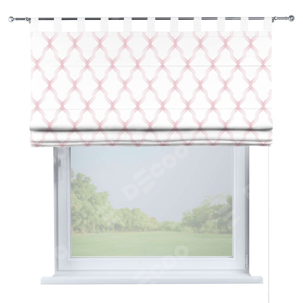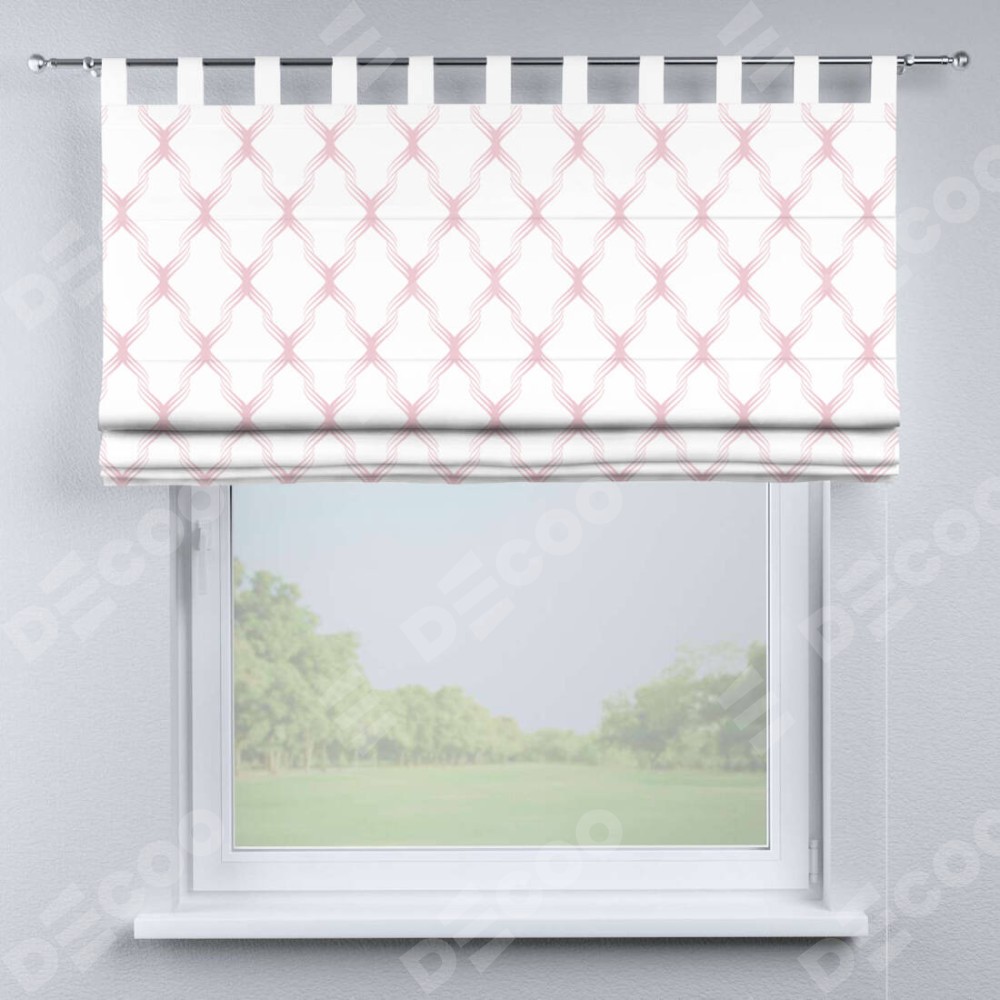 Римская штора производителя «Cortin», используется для проёма, пошита из ткани блэкаут с нанесением сублимационной печати «Розовые ромбы». Данная модель пошита на петлях, комплектуется на выбор круглым карнизом и подходит для монтажа на стену. Римская штора на петлях имеет простую систему регулировки высоты, отличительным преимуществом данной модели является простой способ монтажа. Достаточно повесить ее на трубу и штора готова!