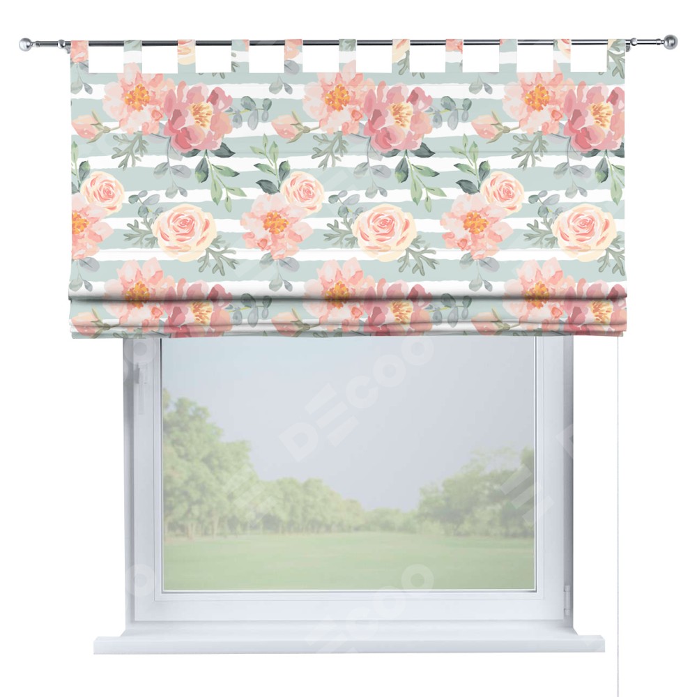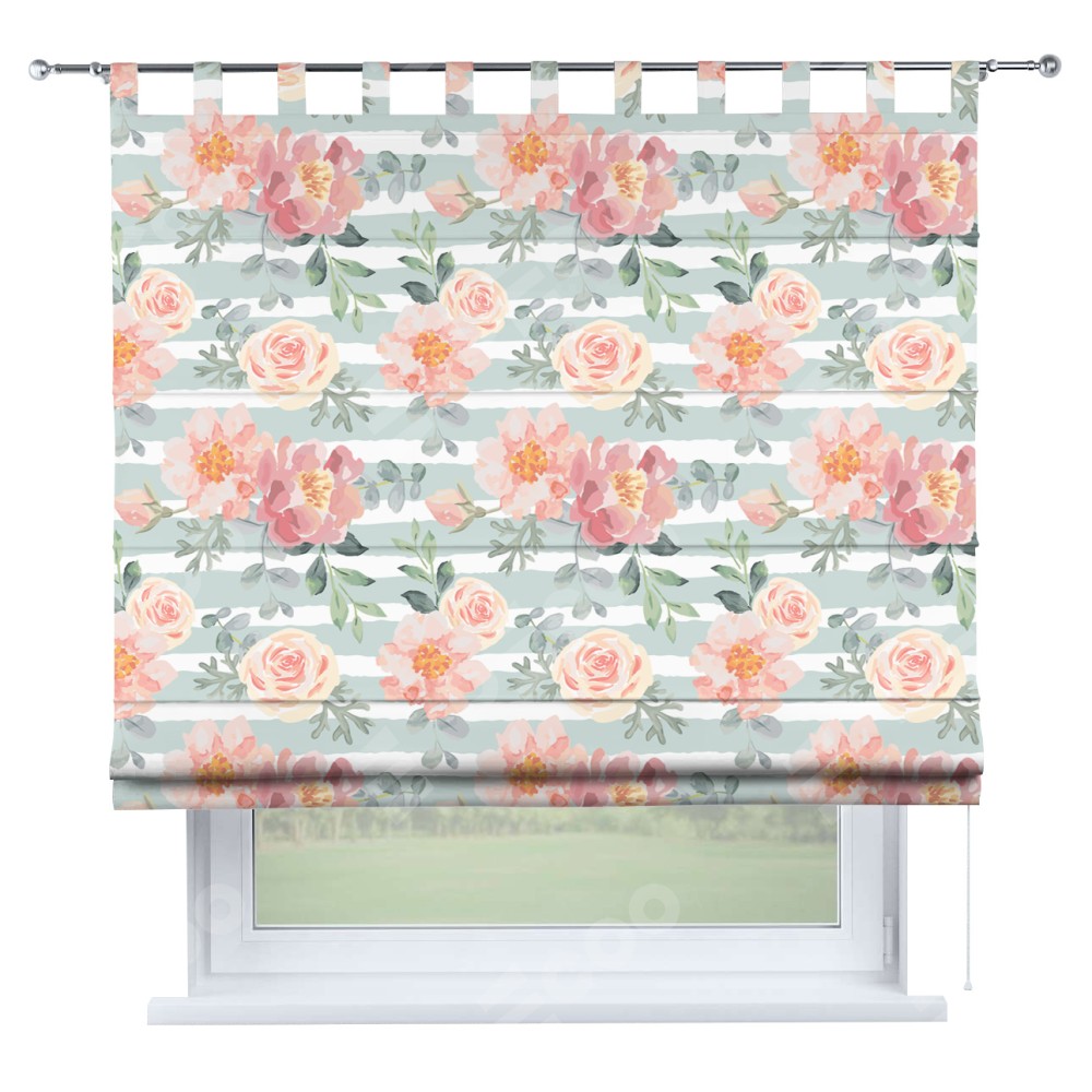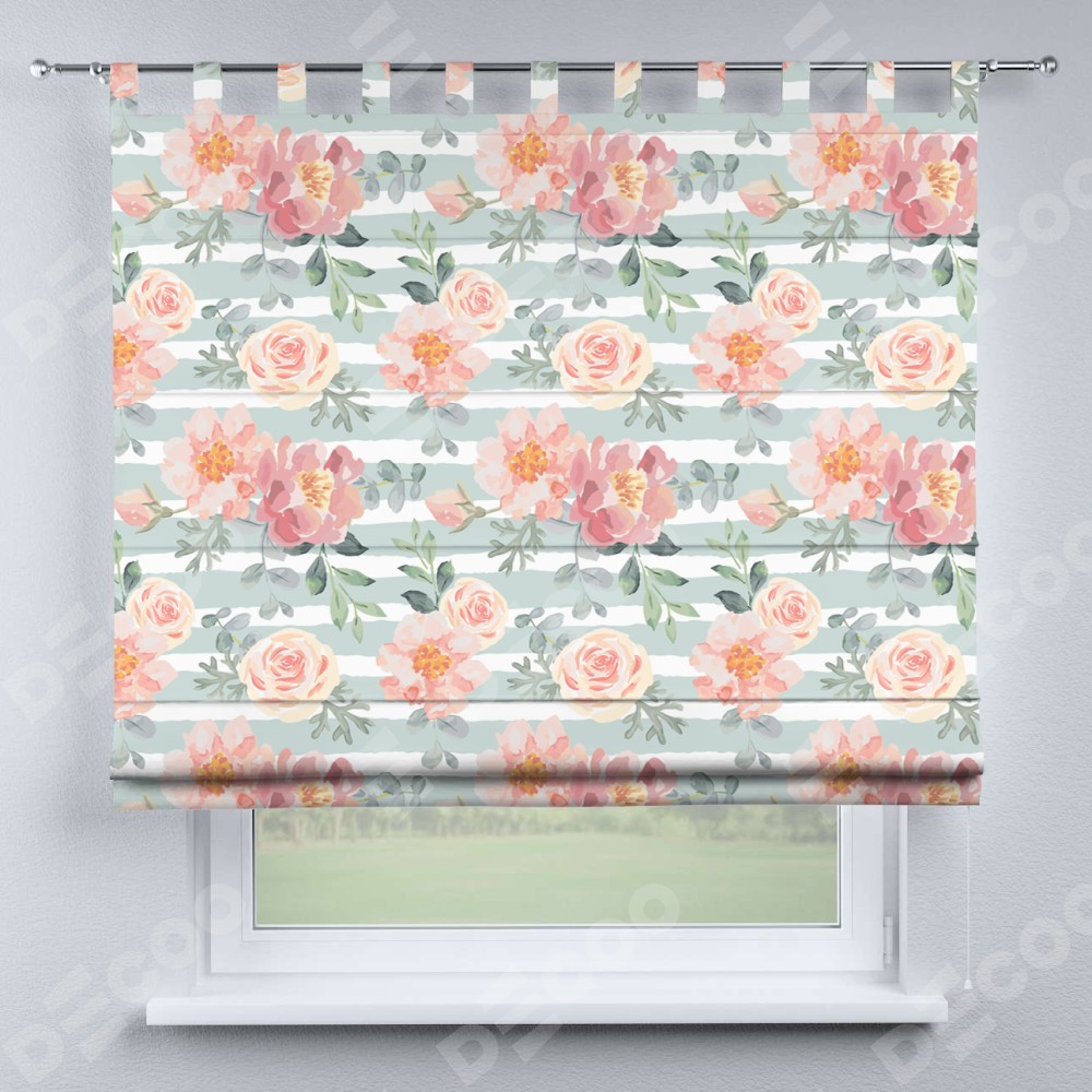 Римская штора производителя «Cortin», используется для проёма, пошита из ткани блэкаут с нанесением сублимационной печати «Розы акварель». Данная модель пошита на петлях, комплектуется на выбор круглым карнизом и подходит для монтажа на стену. Римская штора на петлях имеет простую систему регулировки высоты, отличительным преимуществом данной модели является простой способ монтажа. Достаточно повесить ее на трубу и штора готова!