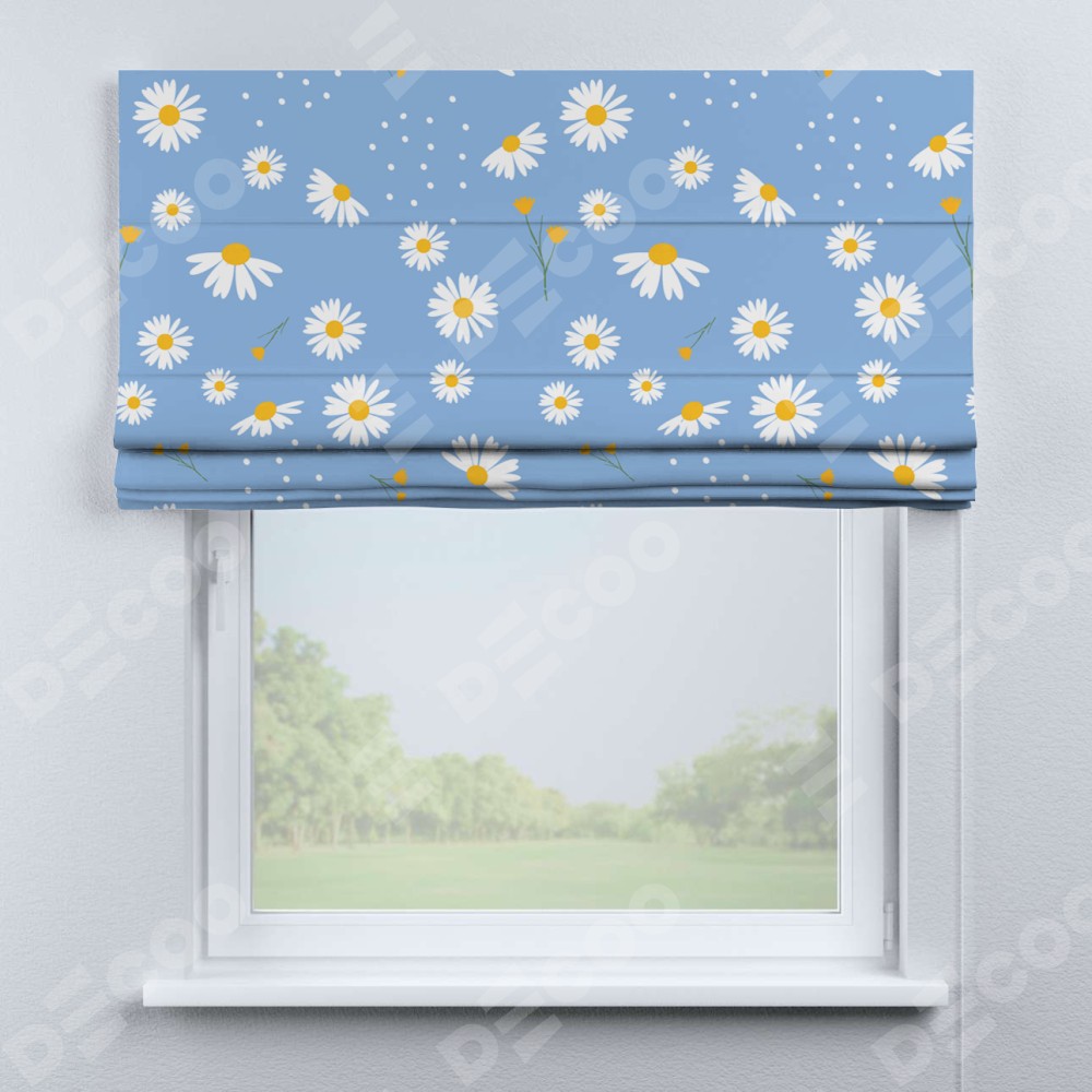 Римская штора «Кортин» для проема «Ромашки на голубом»