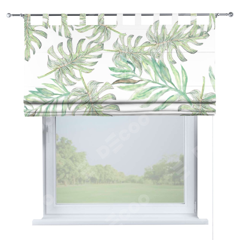 Римская штора производителя «Cortin», используется для проёма, пошита из ткани блэкаут с нанесением сублимационной печати «Листья монстеры». Данная модель пошита на петлях, комплектуется на выбор круглым карнизом и подходит для монтажа на стену. Римская штора на петлях имеет простую систему регулировки высоты, отличительным преимуществом данной модели является простой способ монтажа. Достаточно повесить ее на трубу и штора готова!